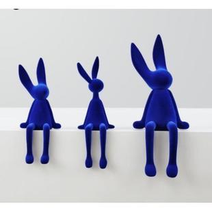 MOMO 饰 克莱因蓝植绒坐姿兔子客厅摆件创意酒店售楼处样板间软装