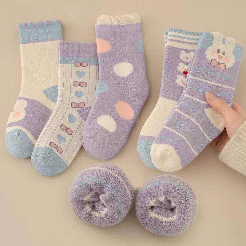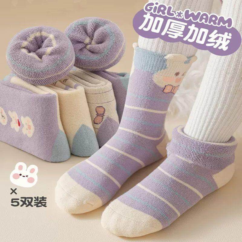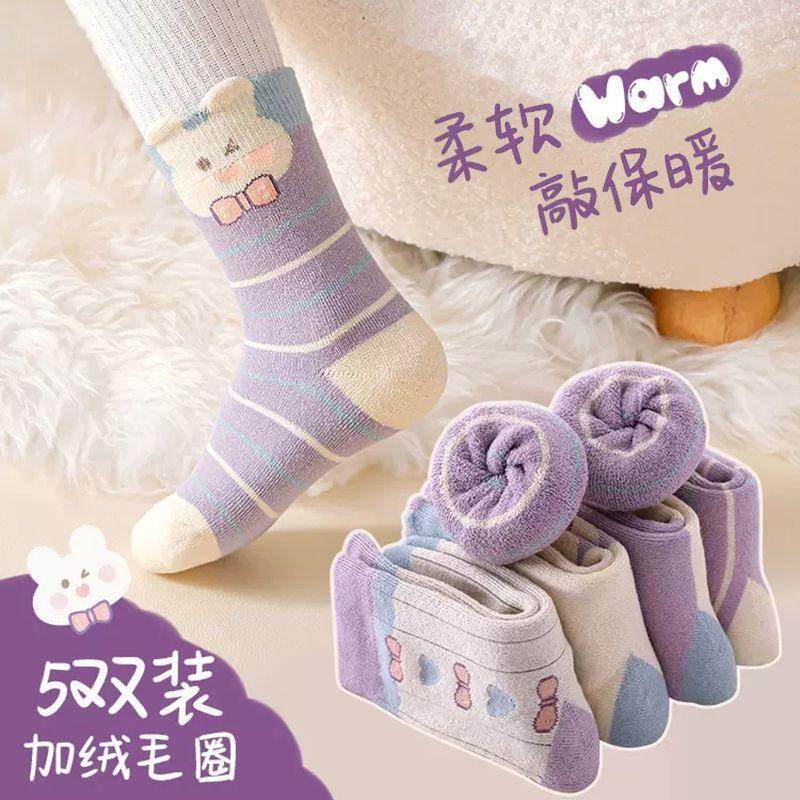 加厚秋冬毛圈冬季 儿童 儿童袜子加绒保暖女童宝宝女孩中筒花边冬款