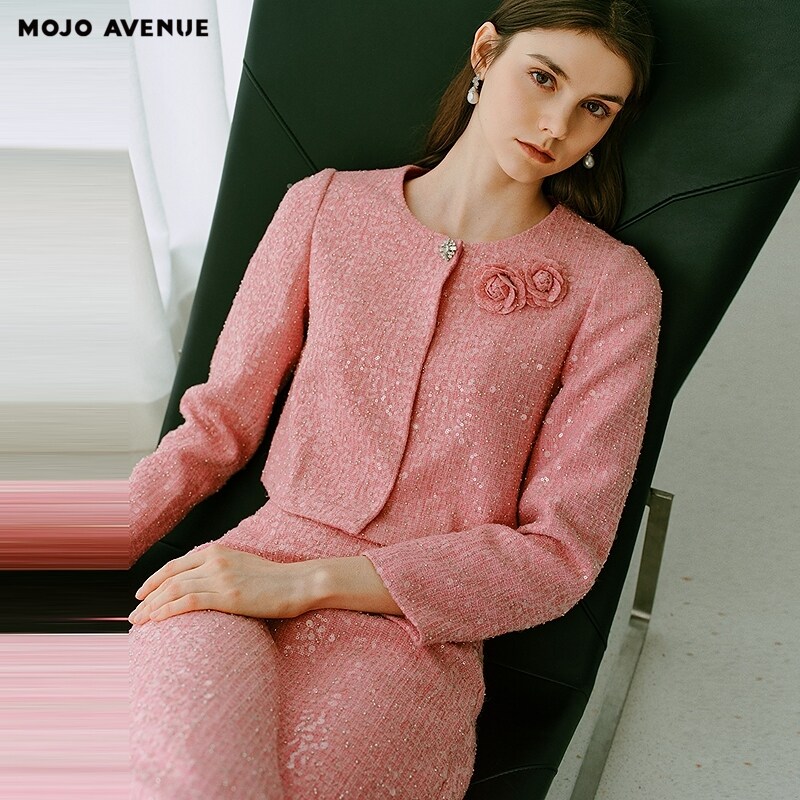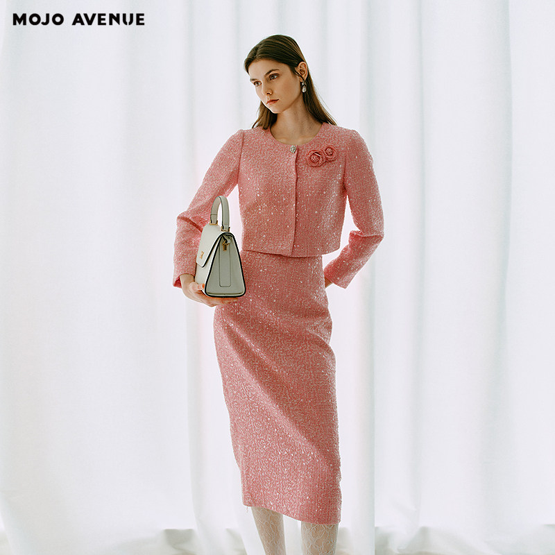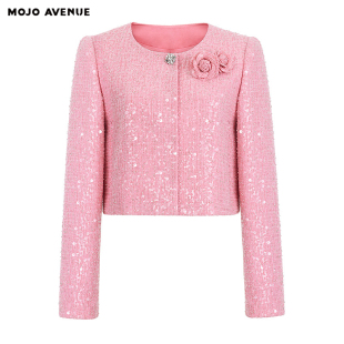 法式 AVENUE莫佐2025秋冬新款 千金感香风外套女活力亮粉 MOJO 朗姿