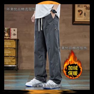 美式 新款 复古工装 运动裤 2025潮牌宽松大码 加绒保暖卫裤 直筒休闲裤
