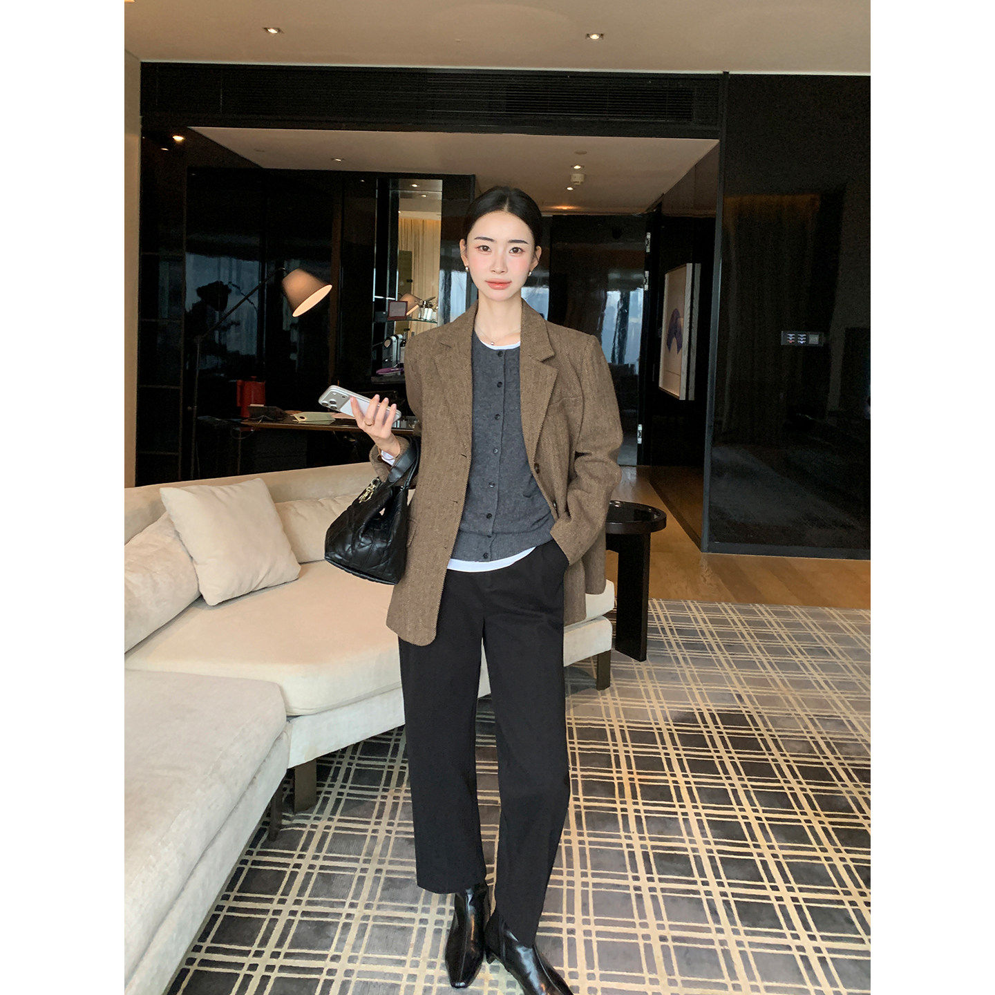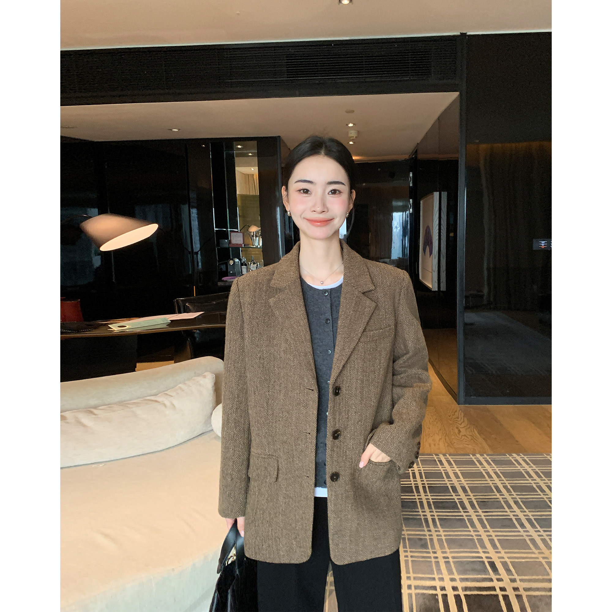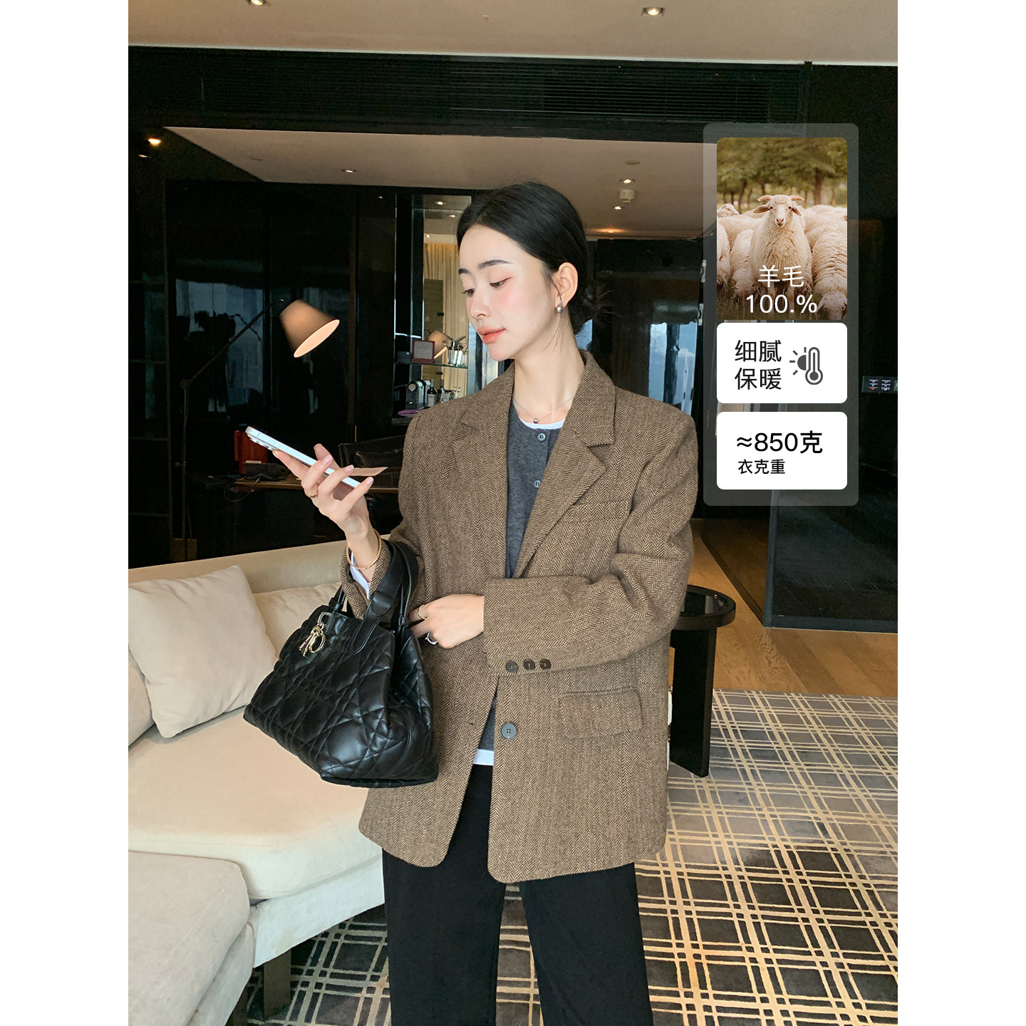 1OO羊毛呢子西装 精英风范 外套女高智人字纹通勤西服 Lin Maven