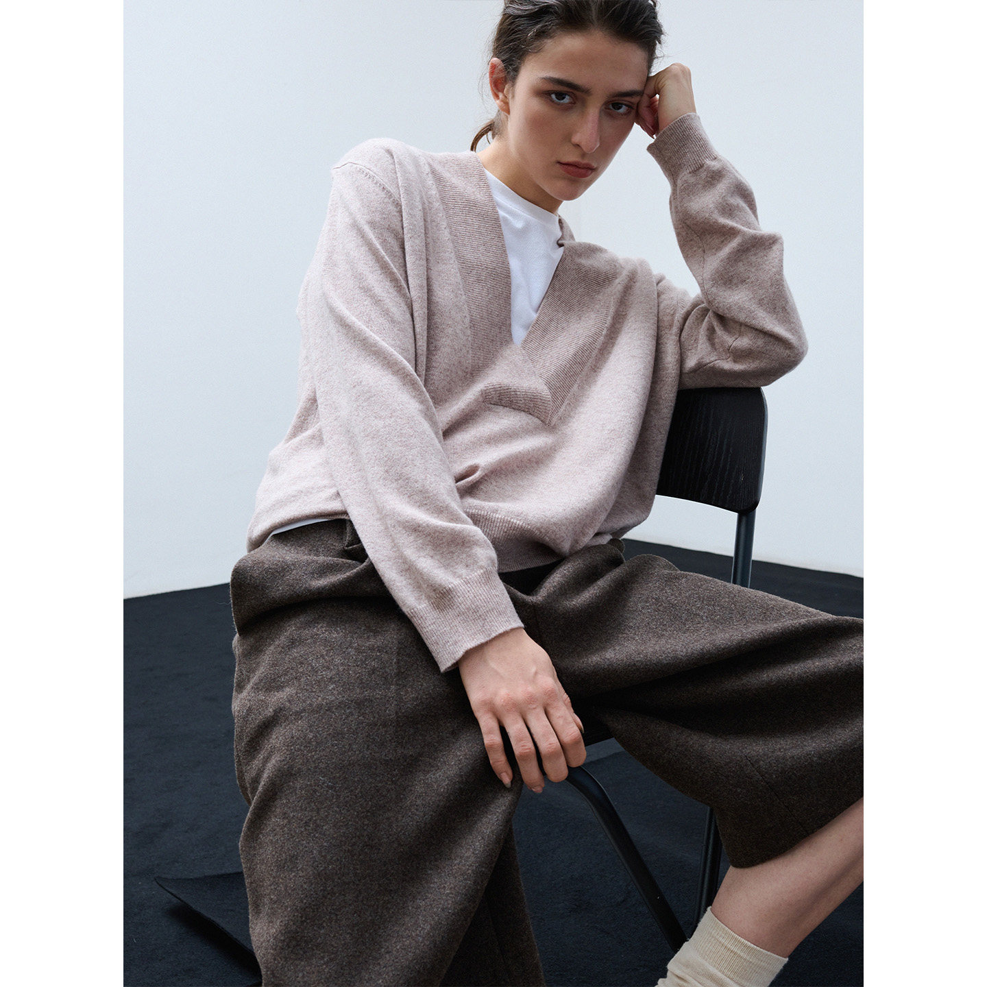 针织打底衫 品牌高级感羊毛衫 女半高领宽松毛衣秋冬加厚羊绒长袖