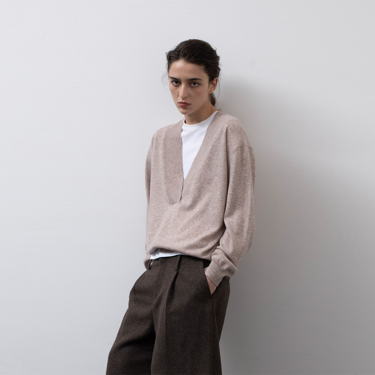 RTIMFD复古假两件v领翻领毛衣 上衣慵懒风外套 cleanfit高级针织衫