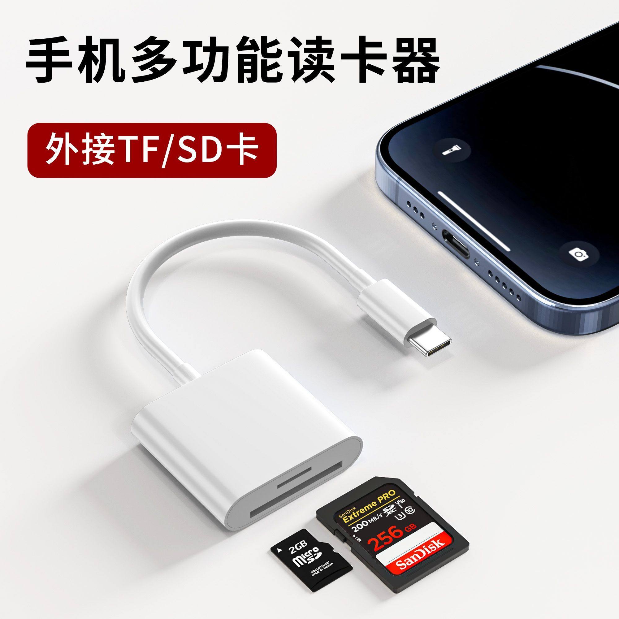 适用iPhone苹果手机读卡器TF SD卡U盘安卓typec相机通用OTG转接器