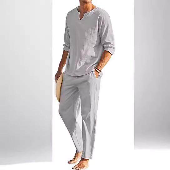Solid Insert Cotton Pocket Color Suit Linen Mens Casual