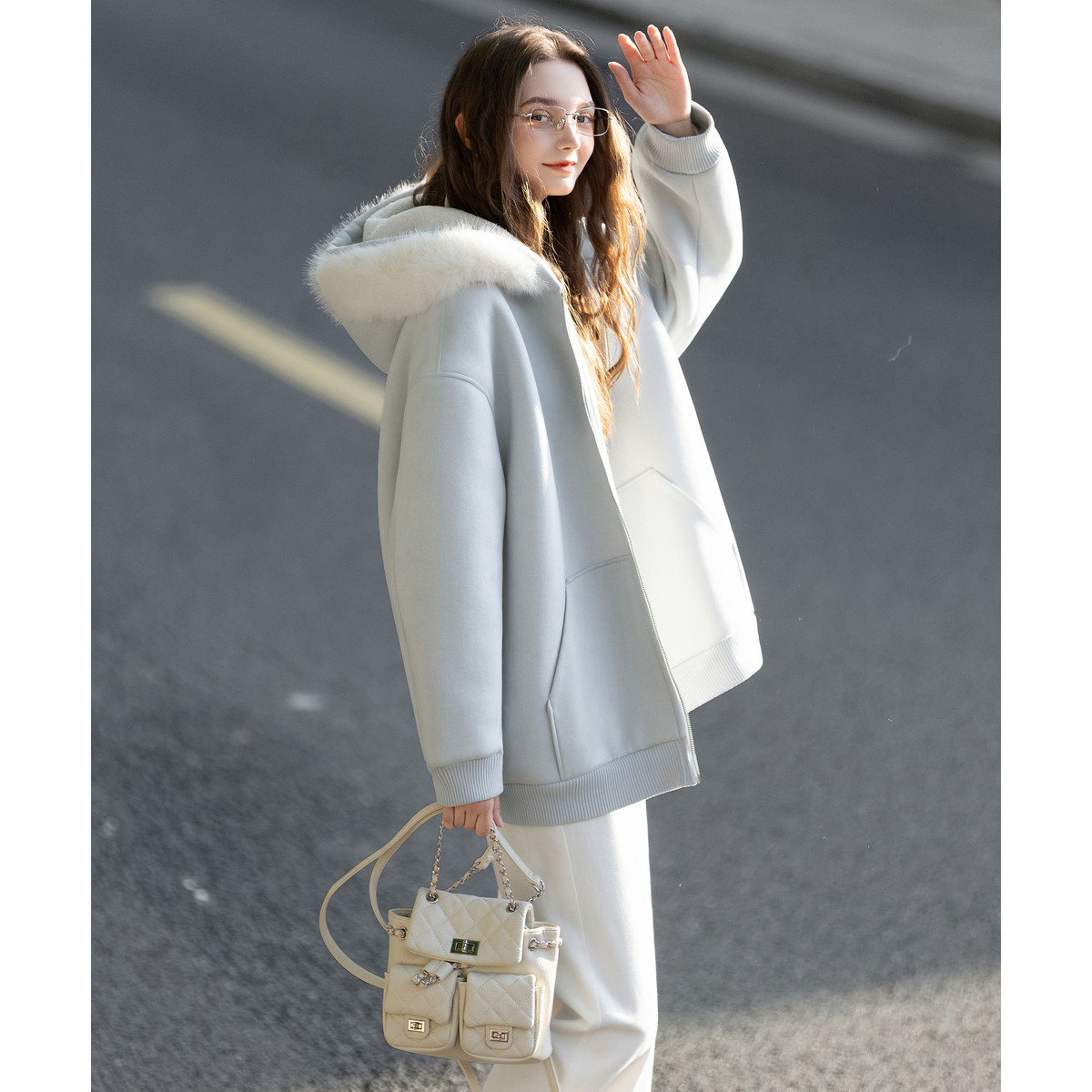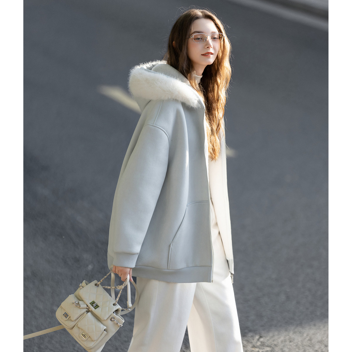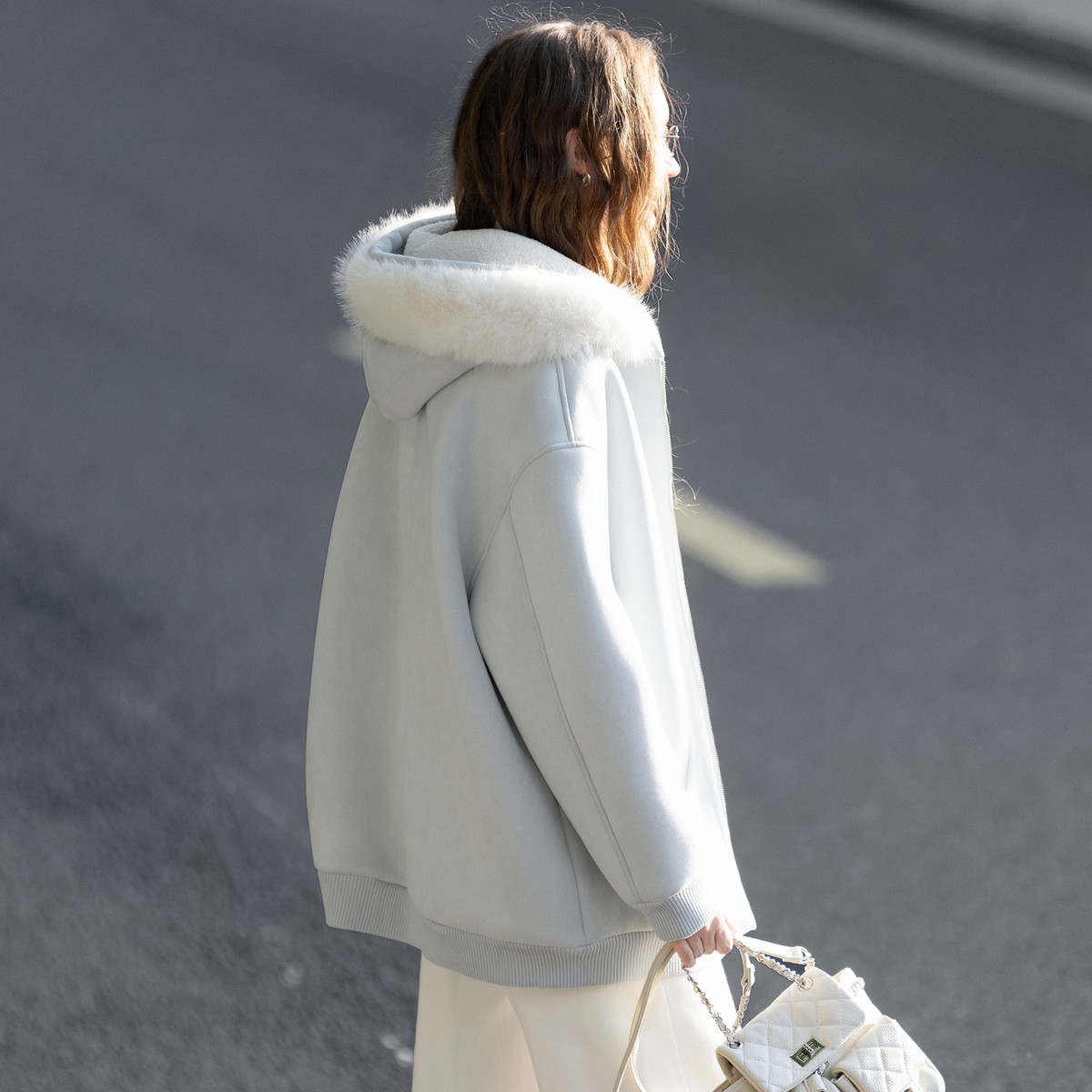 唐狮秋冬新款 淑女好看TUTA 女厚外套软糯毛茸茸毛领仿麂皮绒中长款