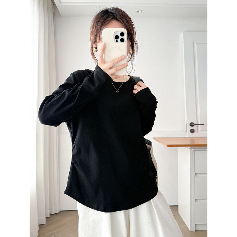 大码 2025新款 女装 T恤打底衫 设计感上衣 200斤胖mm收腰显瘦长袖 翠袖