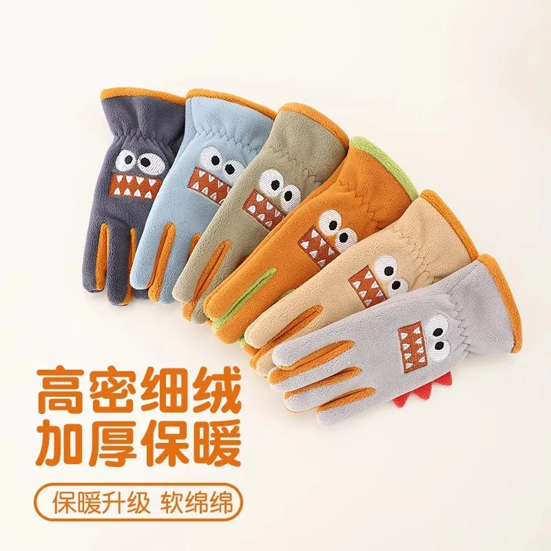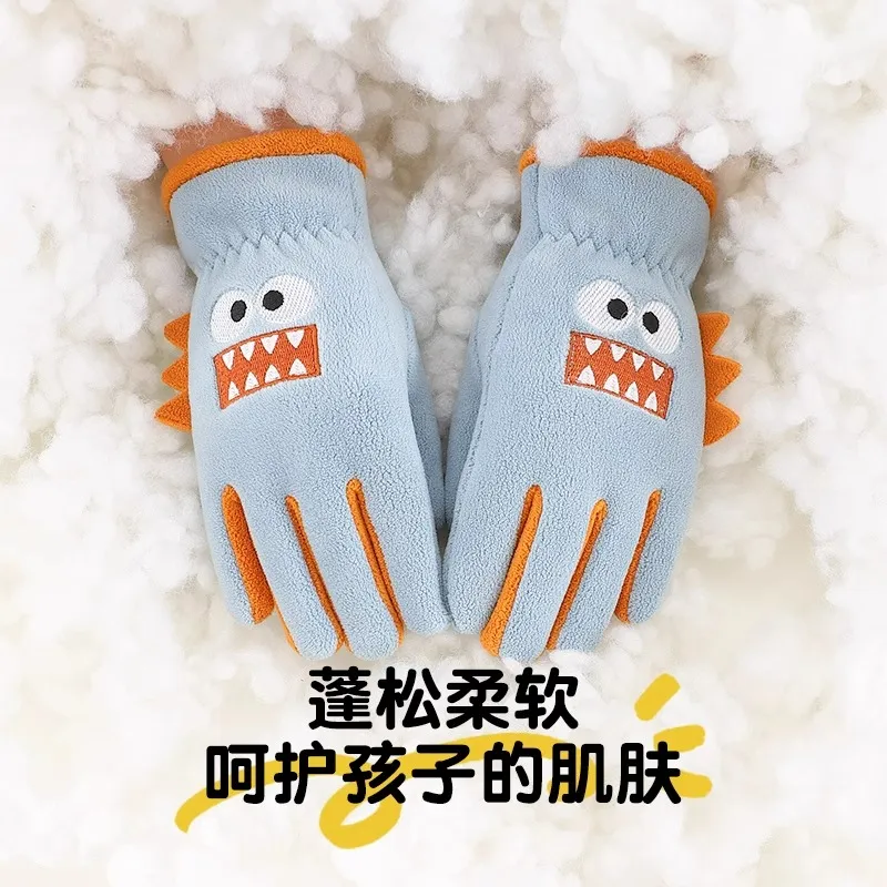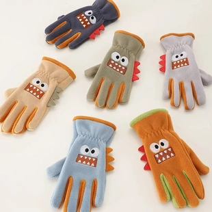 秋冬季 12岁高温纶涤纶触摸绒秋冬学生 儿童五指保暖手套7