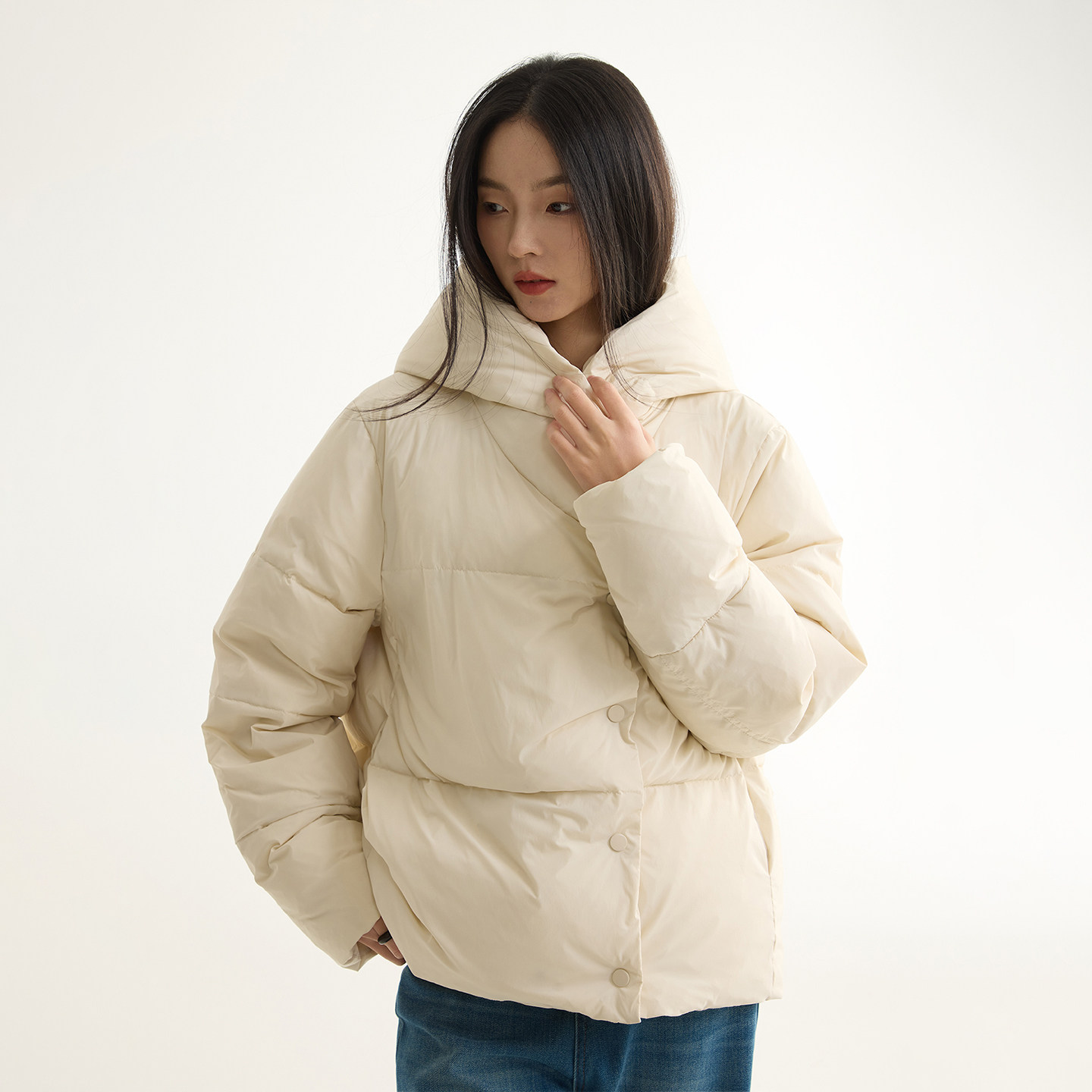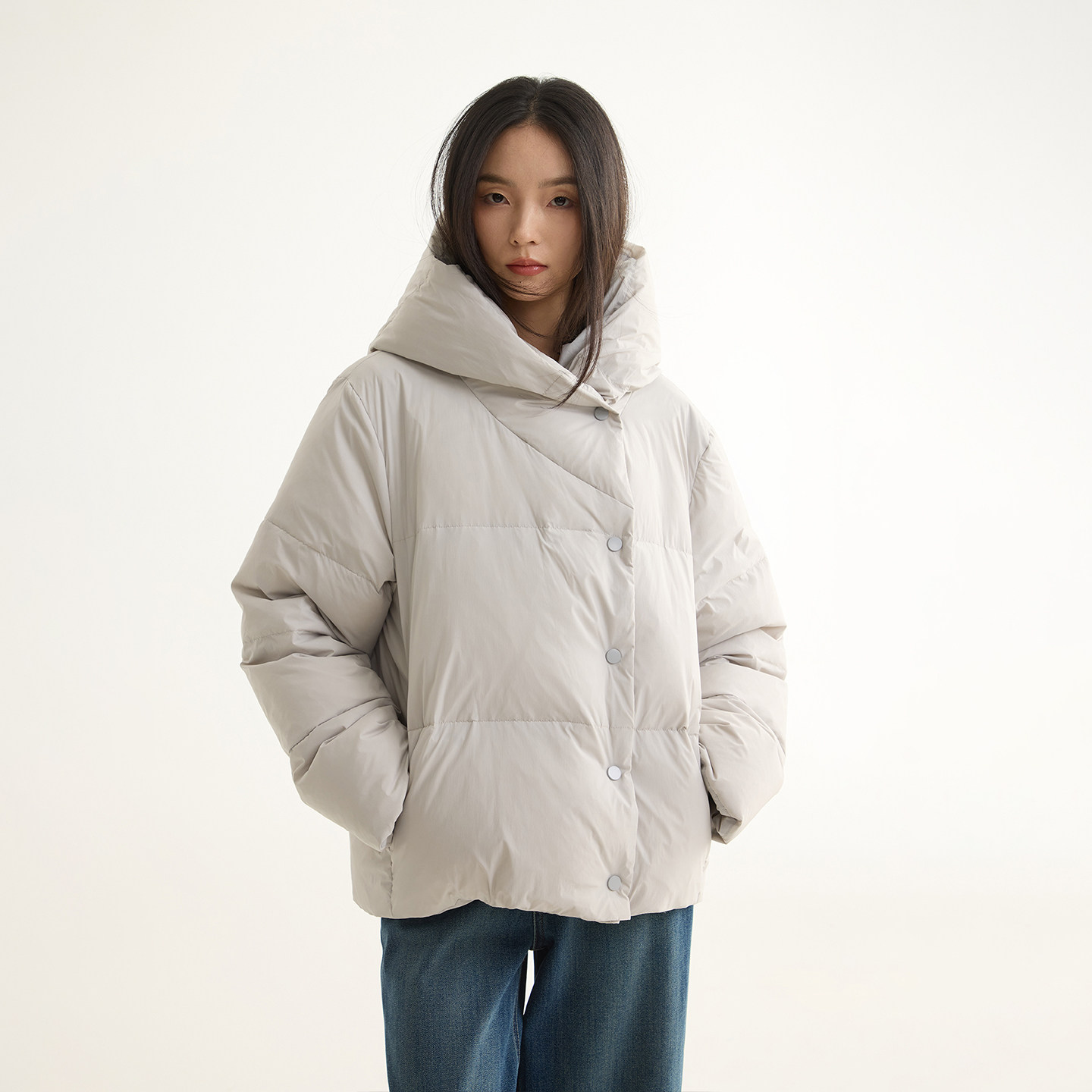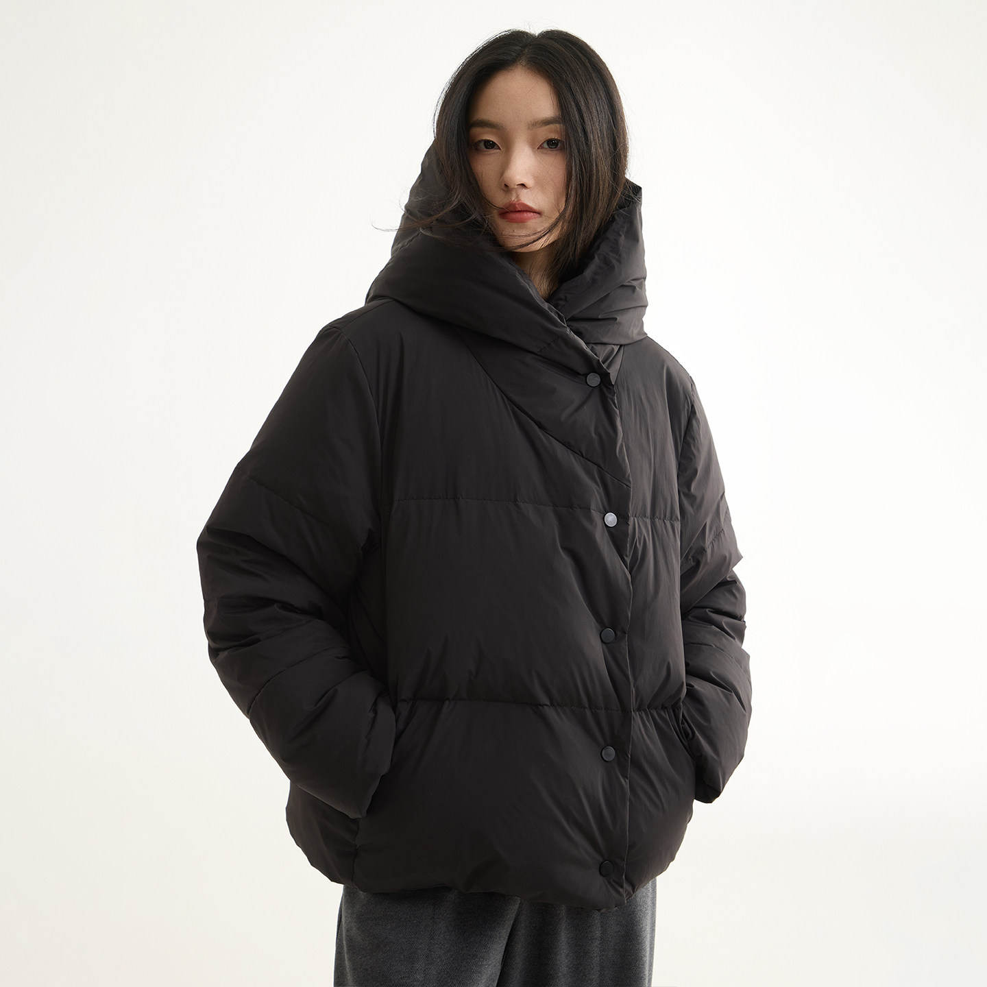 溯源 可扫码 大朵绒加厚连帽羽绒服外套女 安心90白鹅绒 芙蕖FUXU
