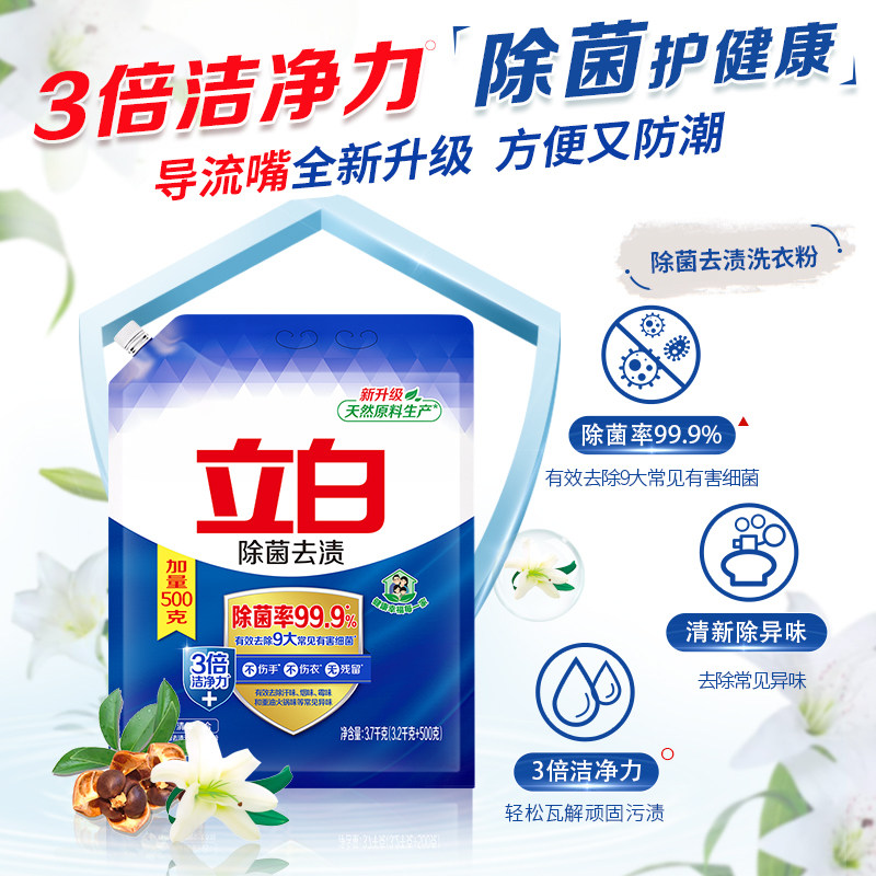 立白洗衣粉除菌去渍实惠装 官方 家用除菌除螨去渍机洗手洗大袋装