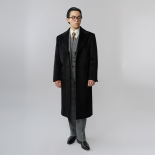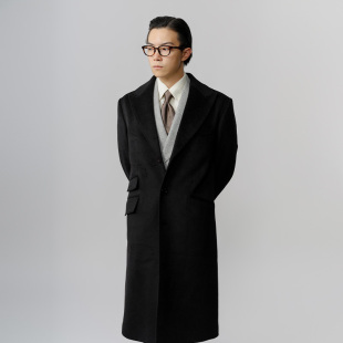 风衣外套男 平圆方中25年戗驳领柴斯特毛呢大衣中长款 50%羊毛