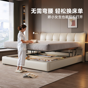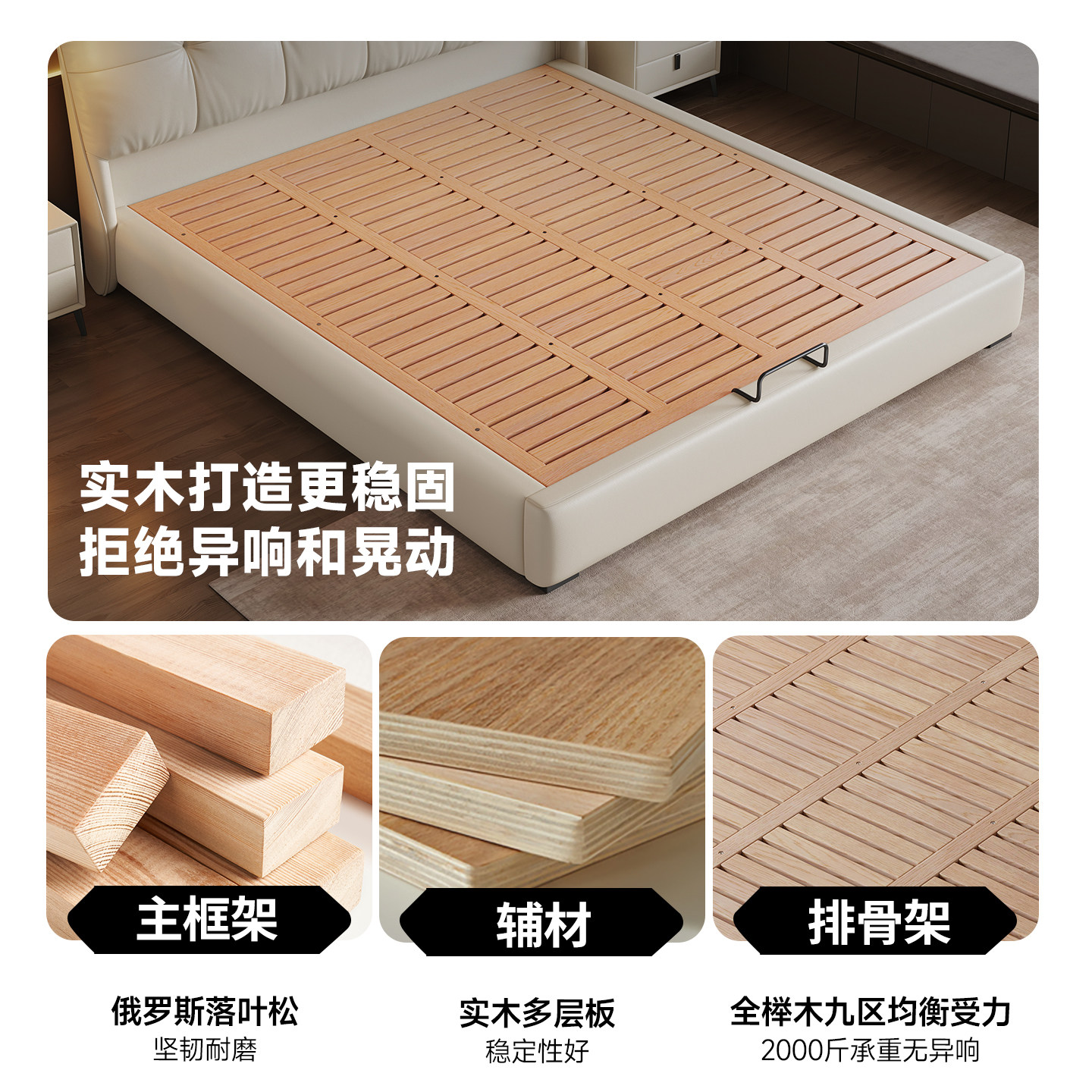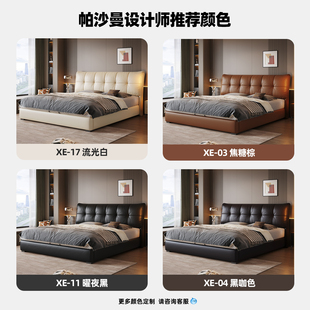 帕沙曼意式 极简床1米8现代简约风真皮床主卧软包靠背大床双人床架