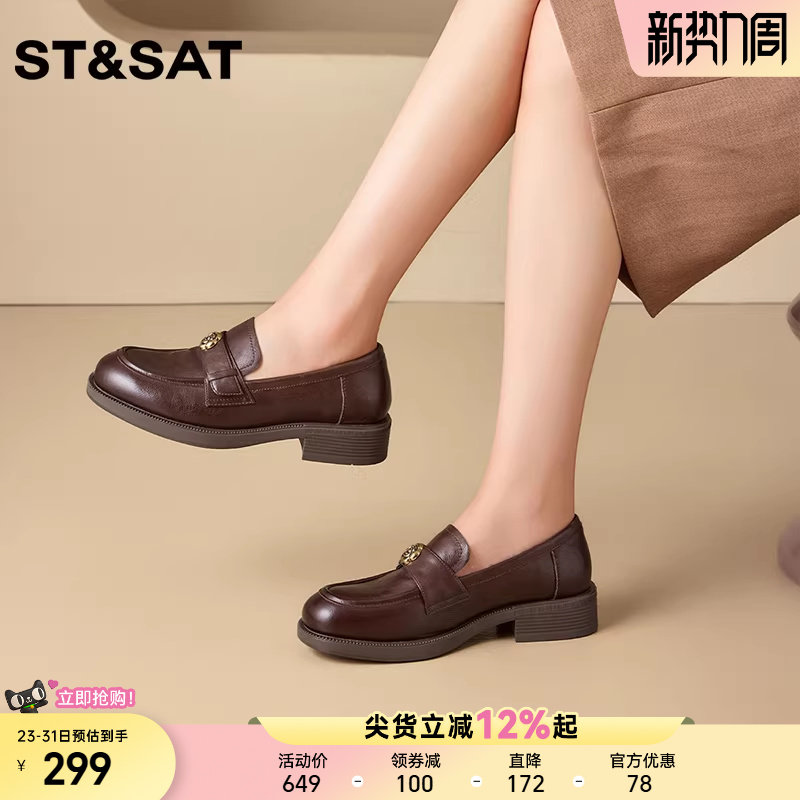 女鞋 星期六中跟黑色百搭舒适乐福鞋 山茶花软底小皮鞋 新款 春季