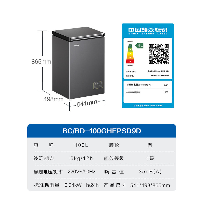 海尔100 40℃ 200升超低温小型冰柜一级单温冷藏冰箱冷柜 新品