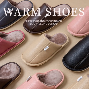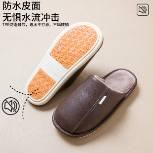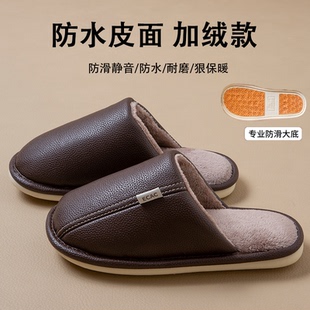 室内家居防水PU防滑保暖静音拖鞋 棉拖鞋 2026新款 秋冬季 男外穿 男士