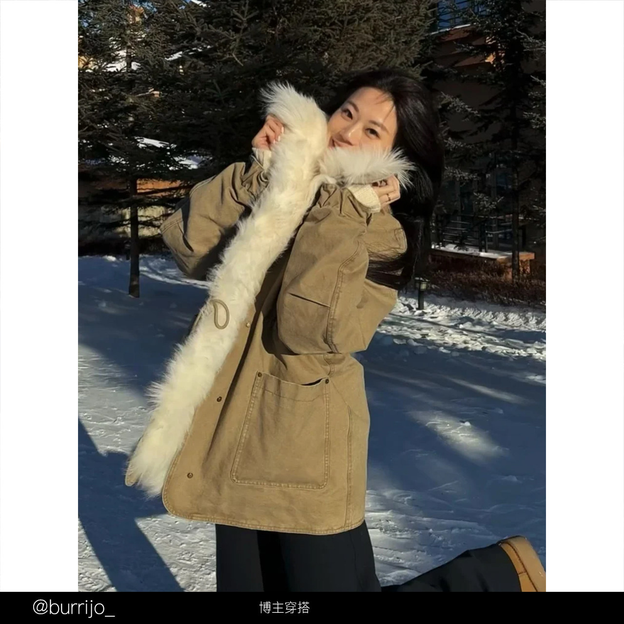 派克羽绒服外套女2025冬新款 可拆羊毛领工装 明星同款 COVERINS
