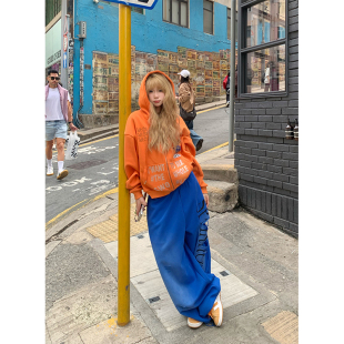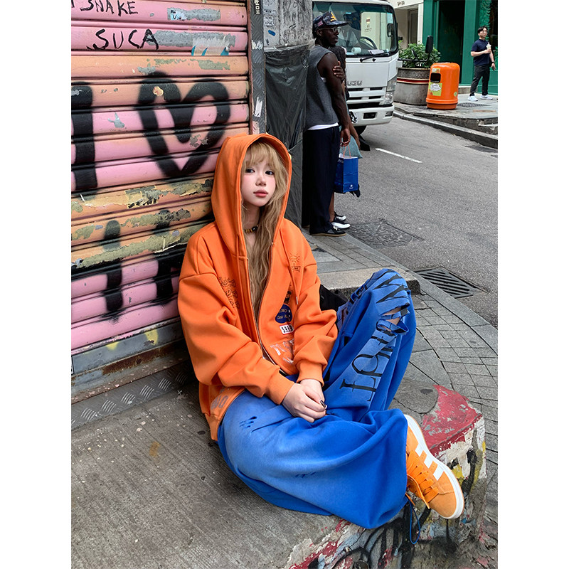 外套 设计感烫钻字母连帽卫衣男女春秋宽松百搭潮牌帽衫 JMJ 美式
