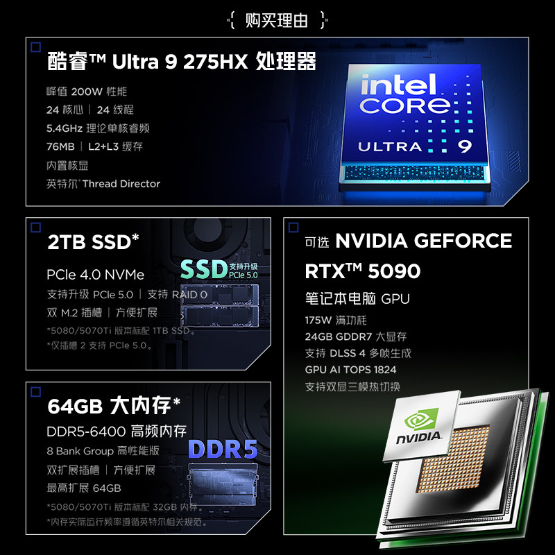 275HX 16英寸Ultra9 RTX5090 5080 电竞游戏本笔记本电脑大学生电脑 努比亚红魔游戏本16Pro 5070Ti 2026