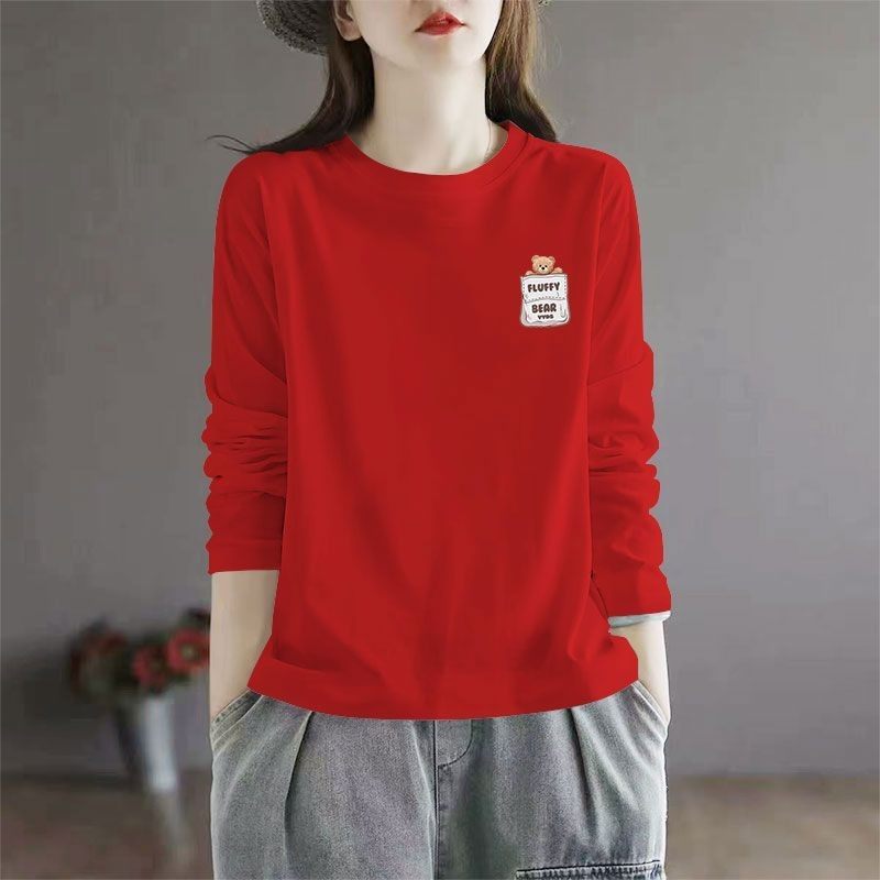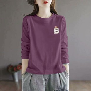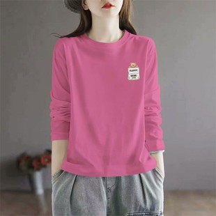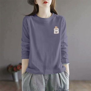 洋气韩版 时尚 通勤休闲圆领ins上衣 印花T恤女春秋新款 100%纯棉长袖