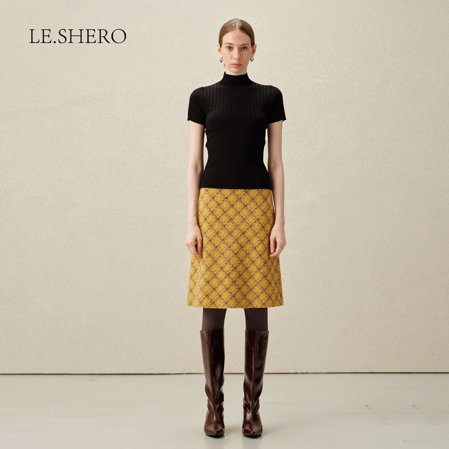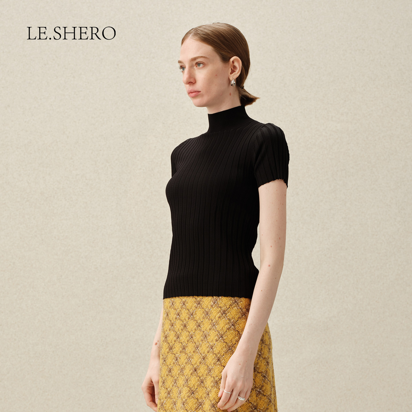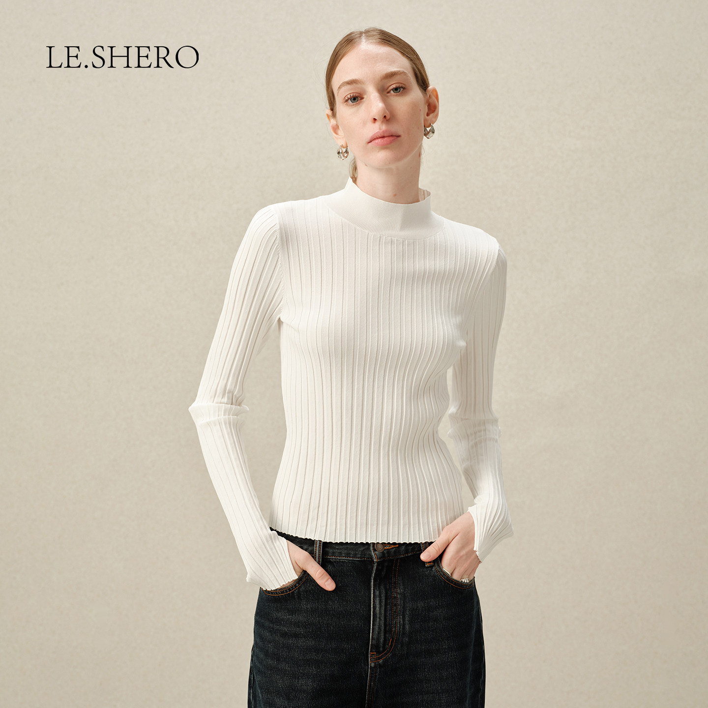 弹性高领毛针织上衣 修身 LE.SHERO 赵露思同款
