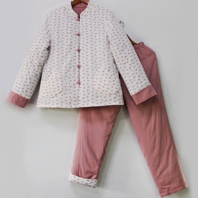女家居服套 冬季 可拆卸内胆老式 新疆棉花棉v袄可脱里手工棉衣棉裤