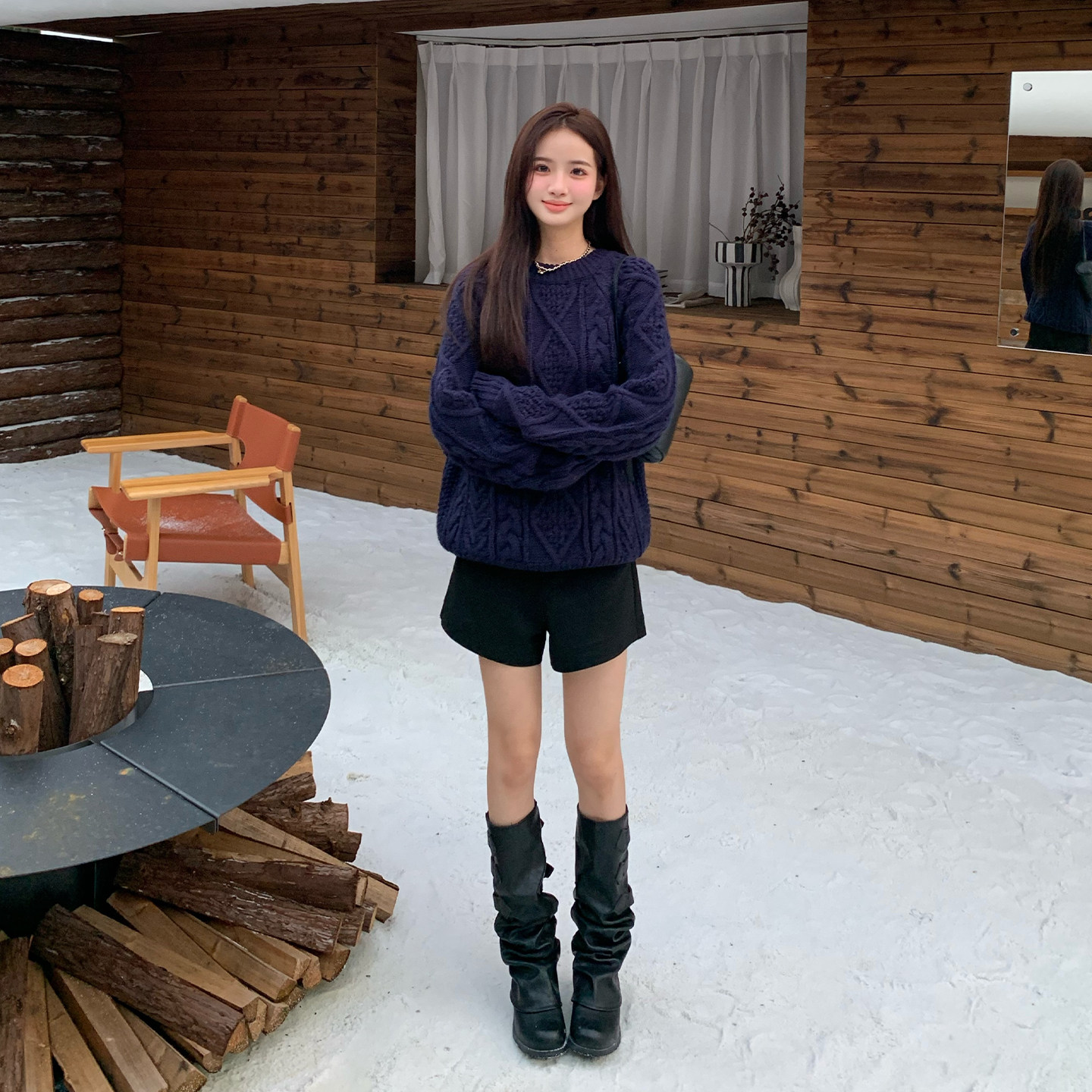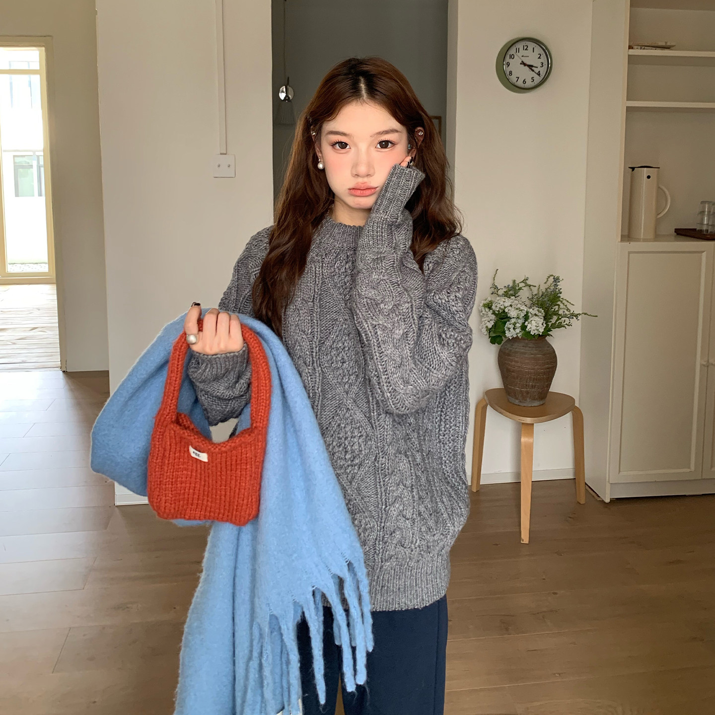 女低圆领宽松显瘦毛衣百搭100羊毛针织打底衫 2025秋冬新款 羊绒衫