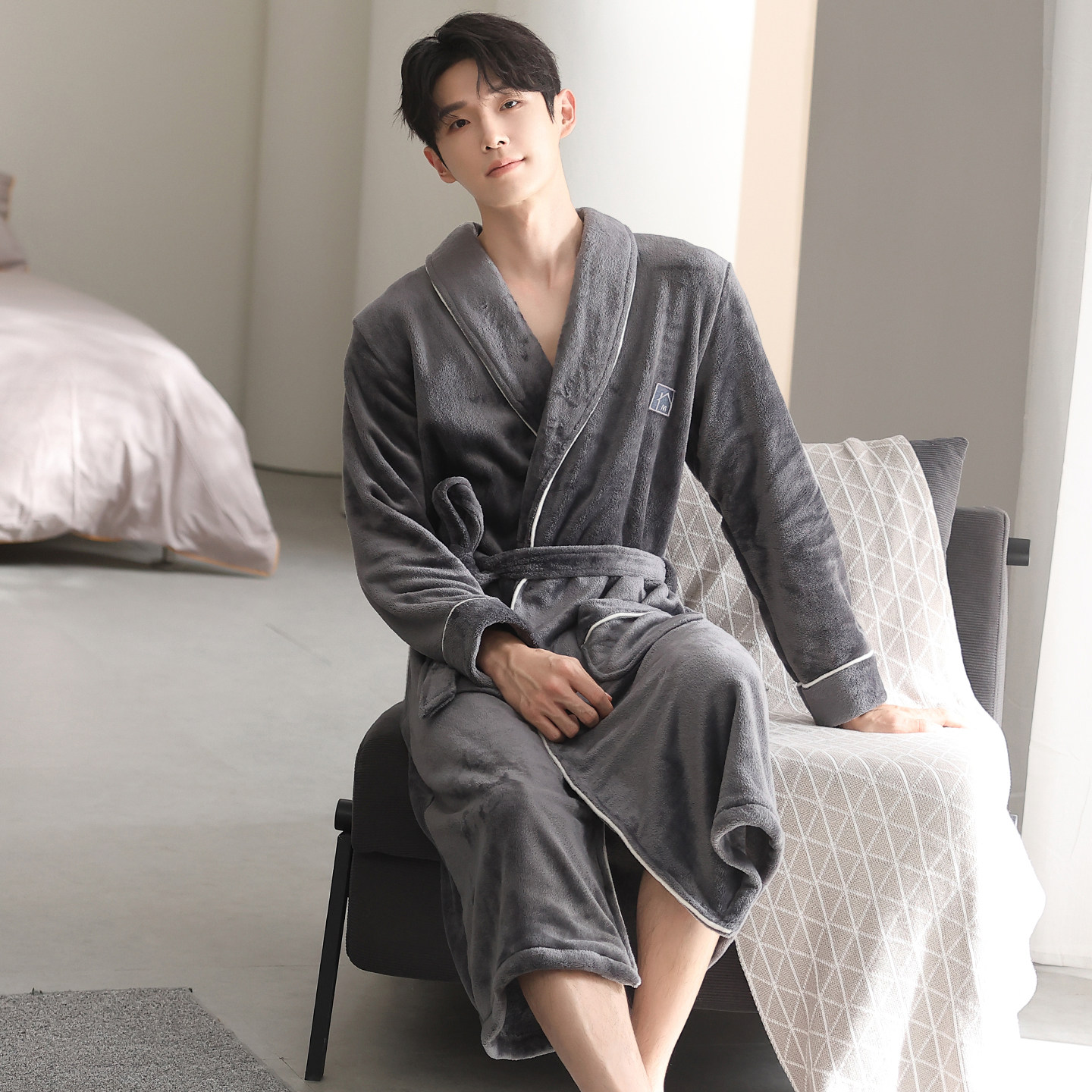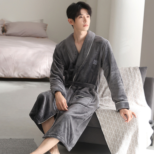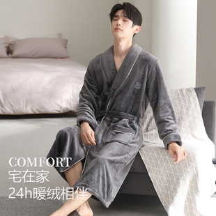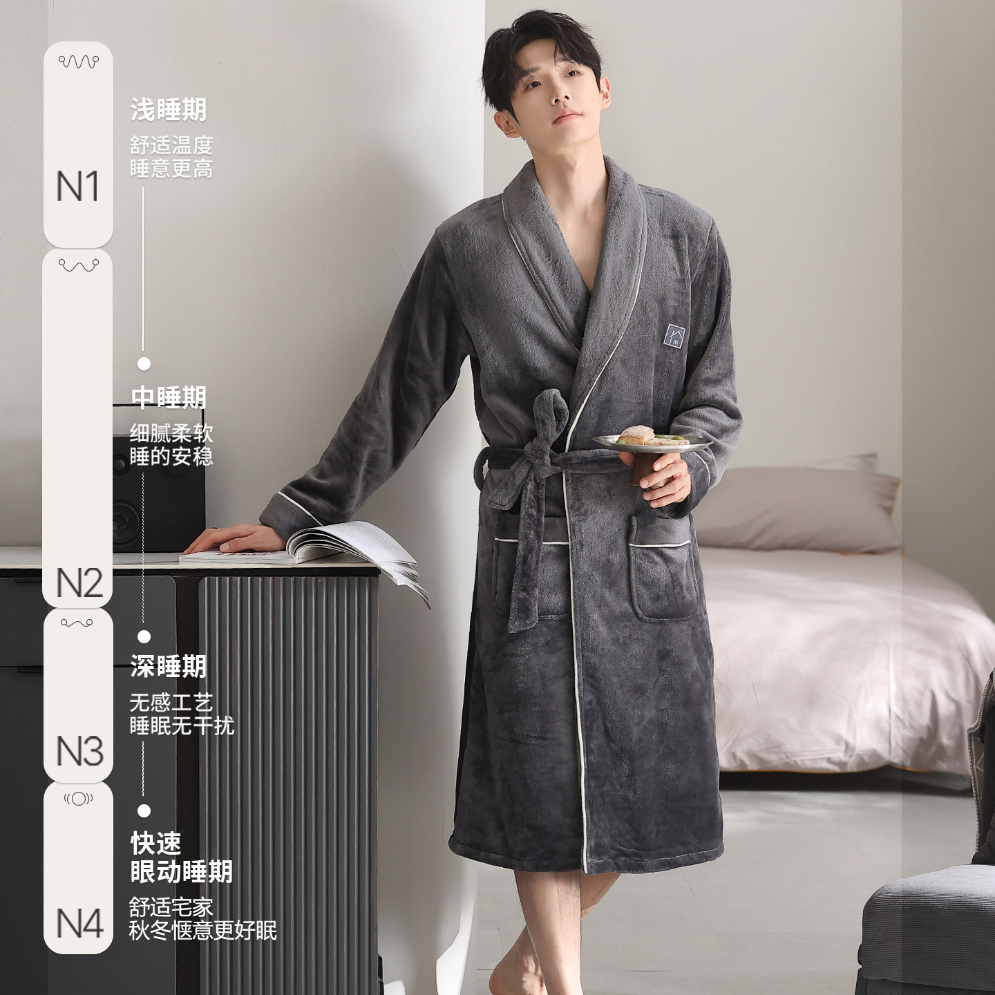 睡衣 珊瑚绒加厚加绒浴袍秋冬天法兰绒灰男士 芬腾可安睡袍男款 冬季