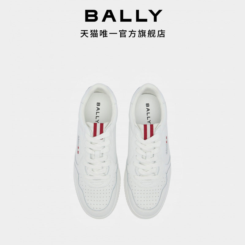 6313409 BALLY巴利红白条纹白色牛皮革女士运动休闲鞋 尊享特惠