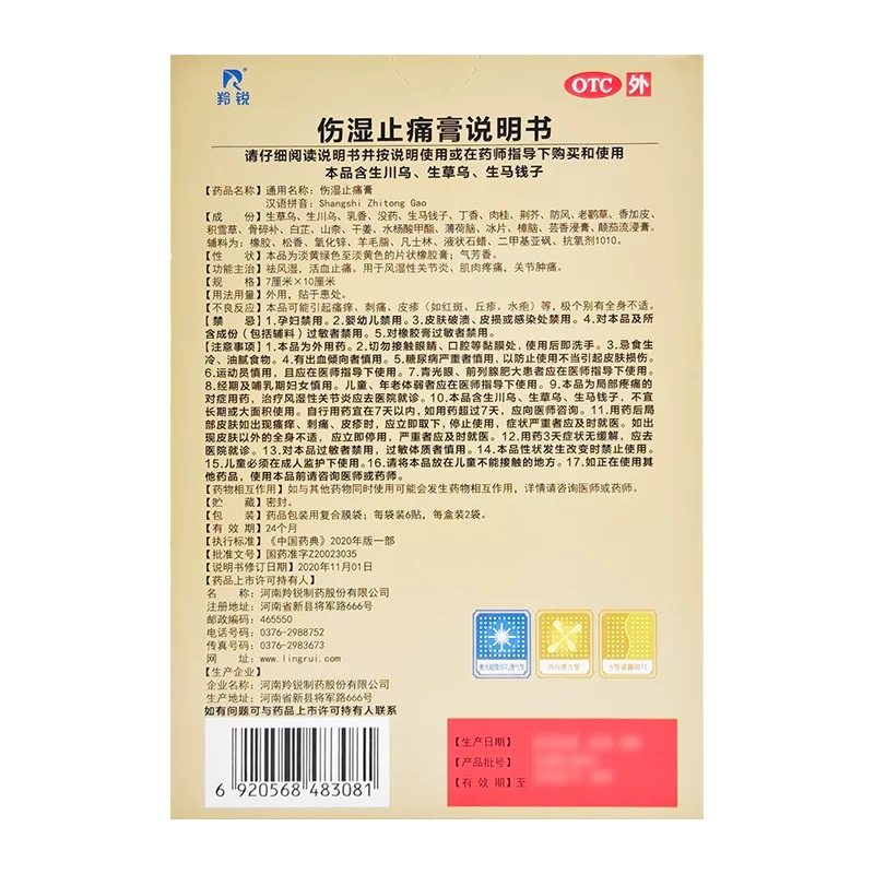 羚锐 12贴 伤湿止痛膏 10cm 盒 7cm