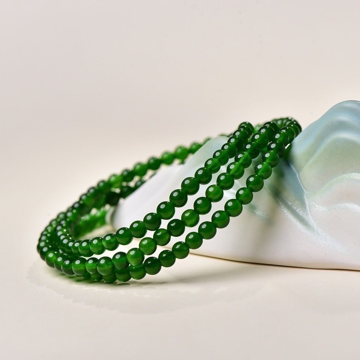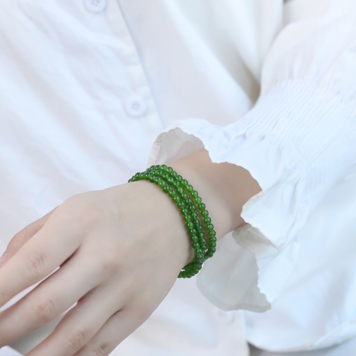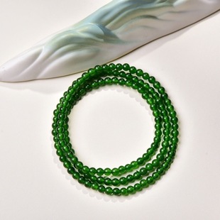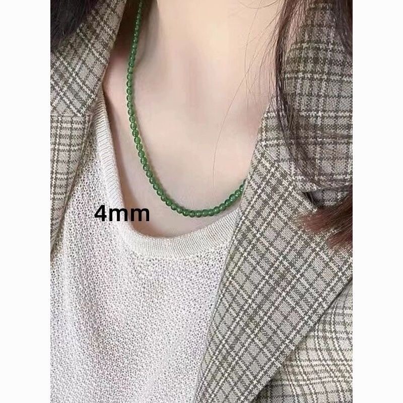天然新疆和田玉碧玉小米珠手串4mm圆珠手链项链两用款 锁骨链保真