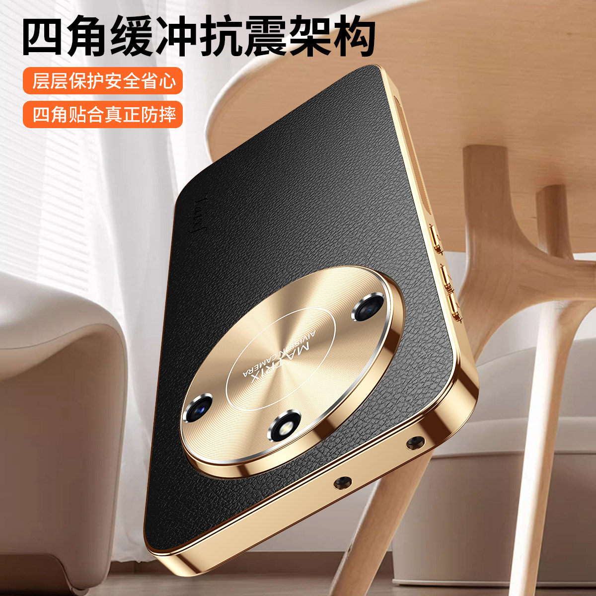 适用华为荣耀X40手机壳RMO一AN00荔枝纹5G保护套合金镜头honor全包防摔x4o电镀硅胶软x405g外NOO男女新款 高级