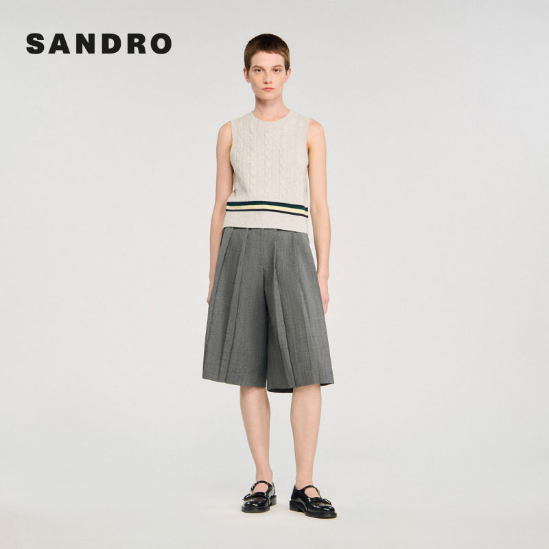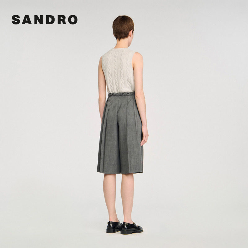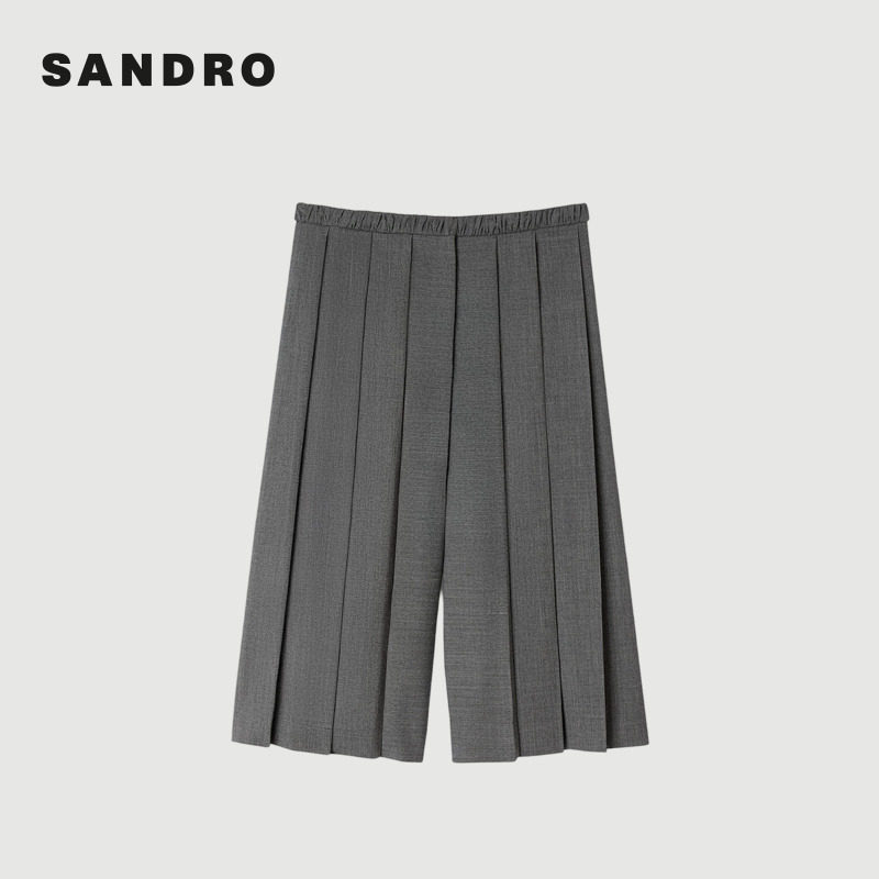 末6折SANDRO博主同款 休闲短裤 2025秋冬女装 高腰松紧阔腿裤 时尚 季