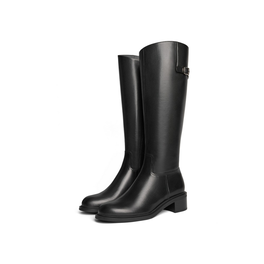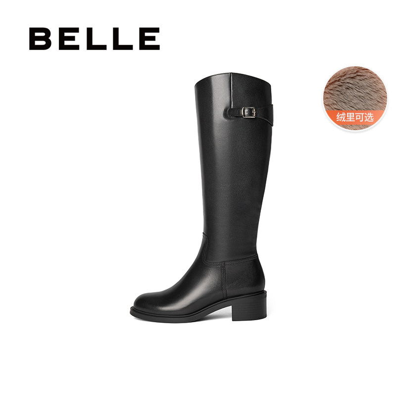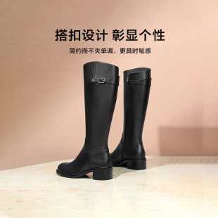 骑士靴加绒黑色长筒高长靴3KV71DG4 新款 明星同款 百丽女靴子冬季