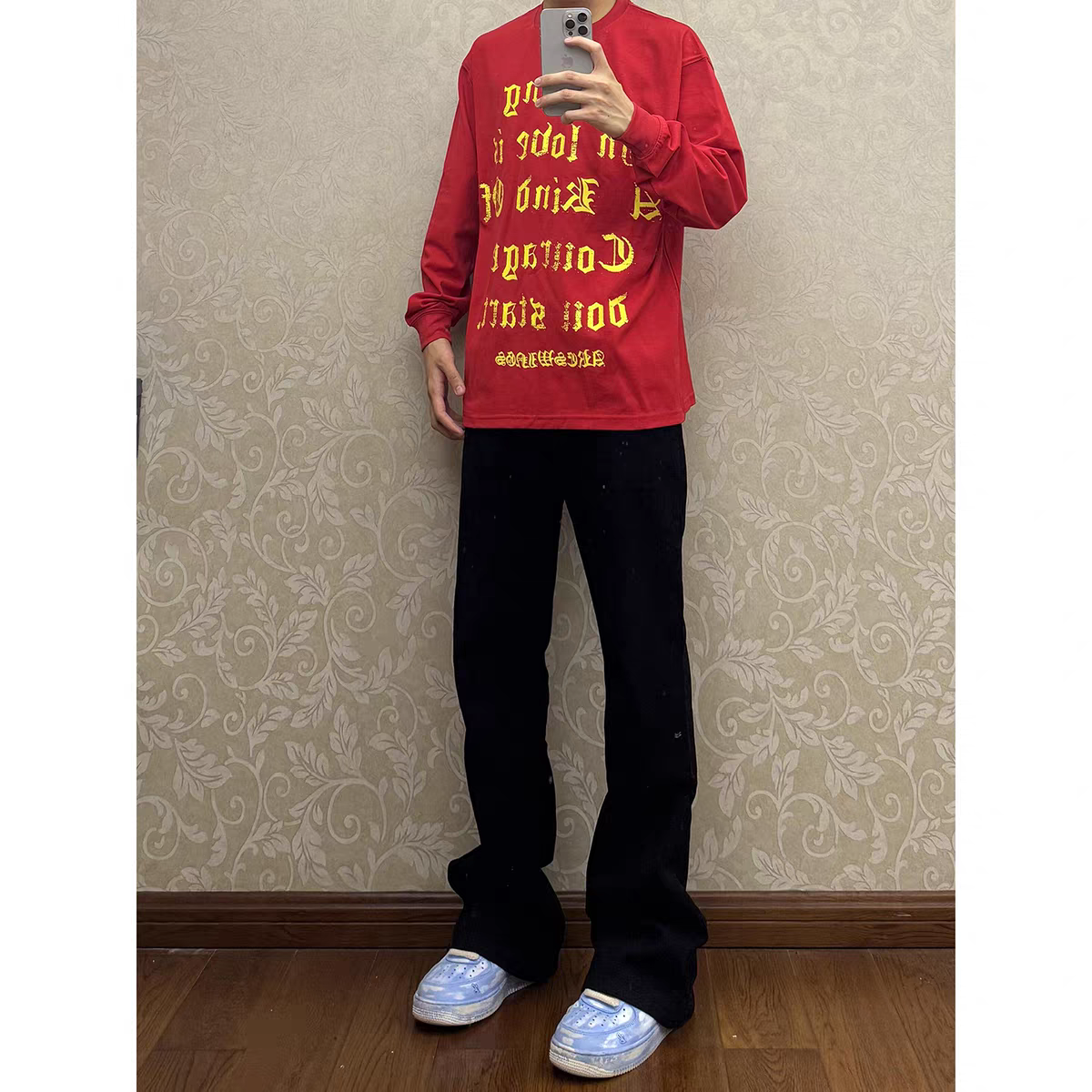 子直筒显腿长弯刀裤 美式 型微喇裤 男高街517版 赤蝰原牛红线牛仔裤