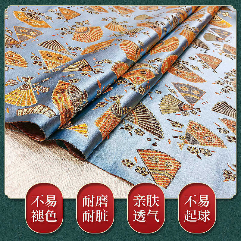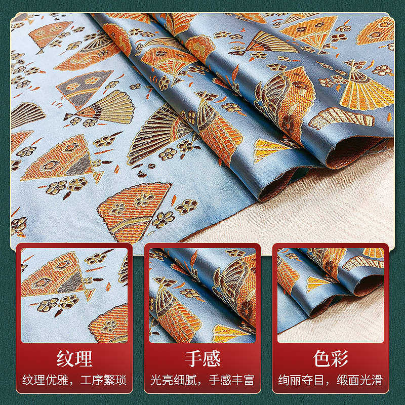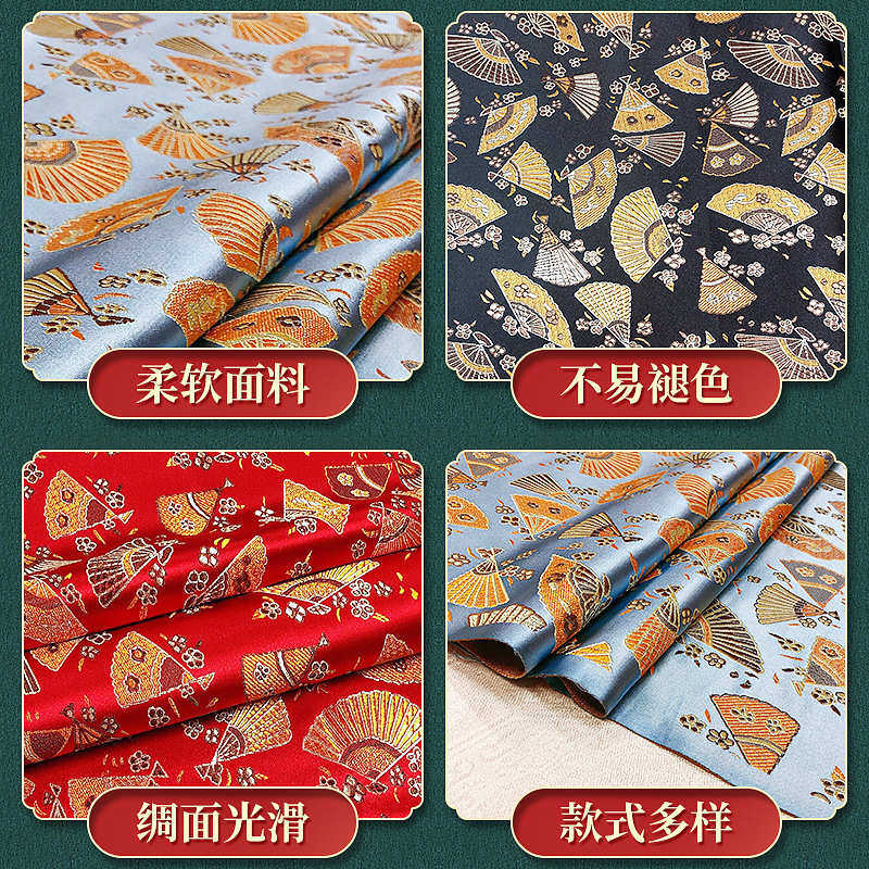 织锦缎面料 尼龙扇子花儿童旗袍拜年服背心马甲手工包包提花布料
