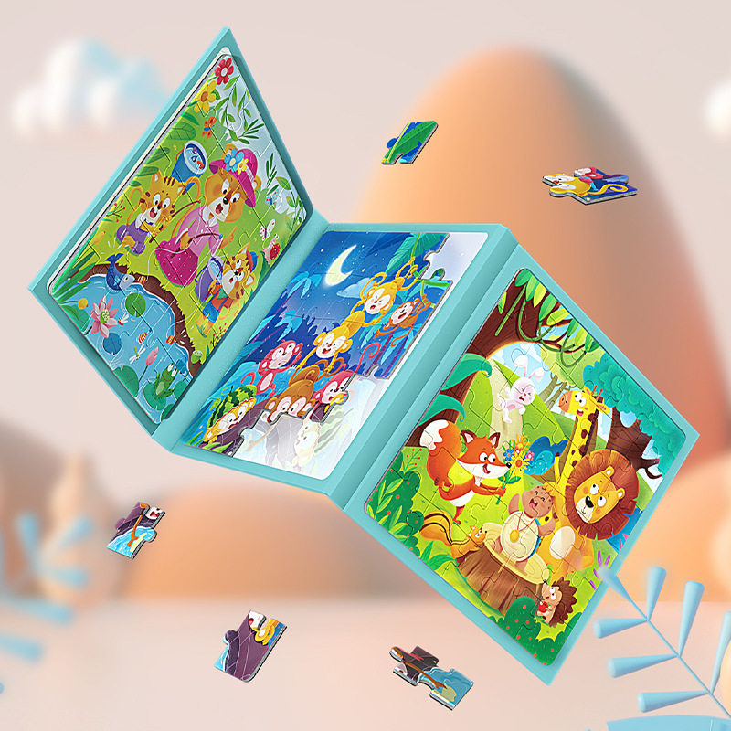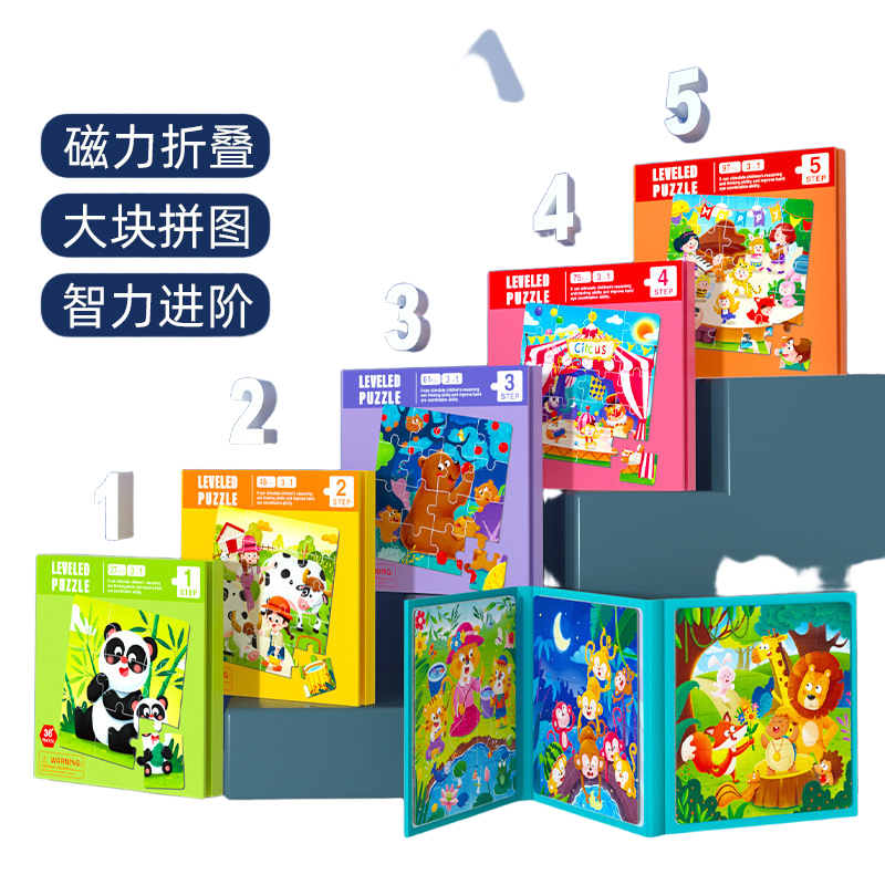 幼儿童益智进阶大块拼图益智磁性动物交通1到5阶阶级平面拼图