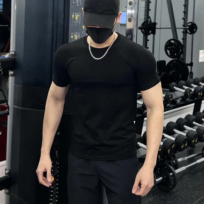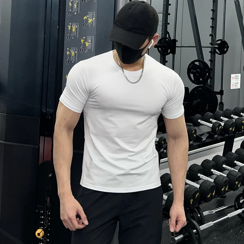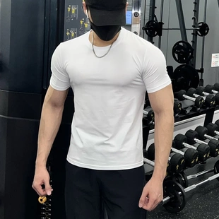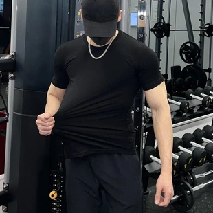 肌肉弹力休闲打底衫 短袖 训练修身 夏季 冰丝运动健身服上衣 t恤男士