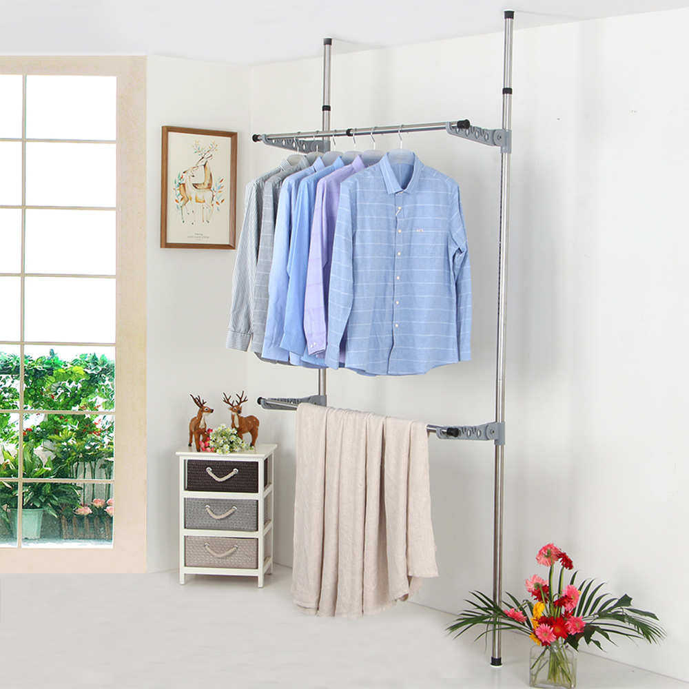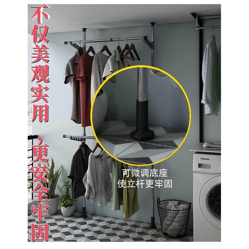 免钉落地式 晾衣架可折叠伸缩晒被子架子 衣架顶天立地挂衣架阳台款