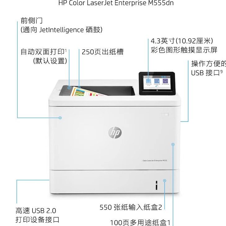 惠普M555dn彩色激光打印机A4高速企业商用自动双面激光打印554dn