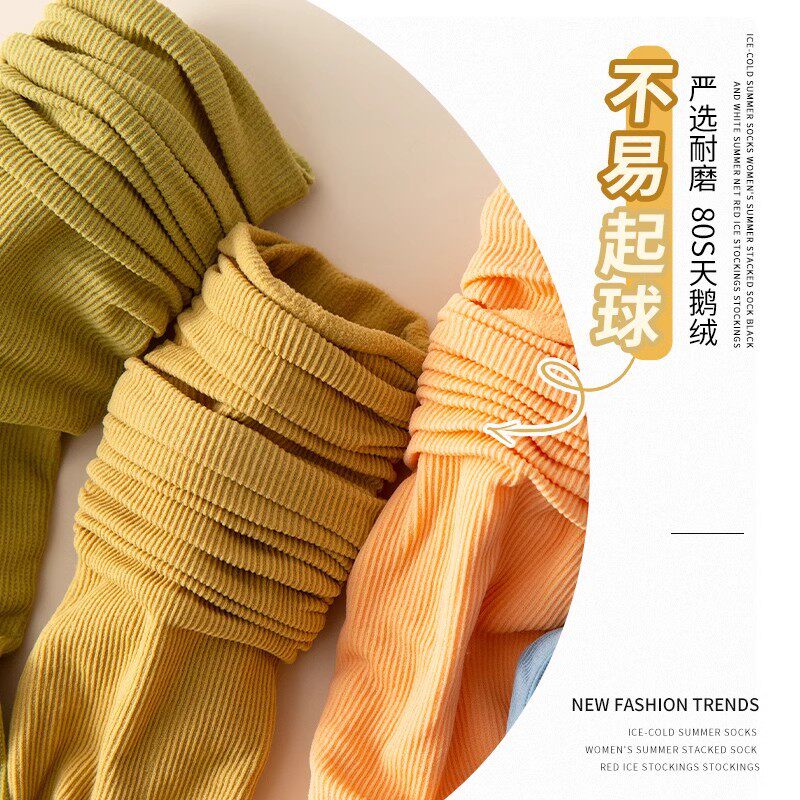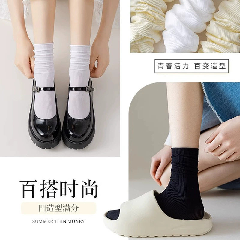 冰丝袜子女春夏薄款 透气堆堆袜冰冰袜子吸汗中筒袜纯色无骨女袜