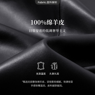 Navigare意大利小帆船春季 酷飒风绵羊皮夹克 黑色皮衣外套女士新款