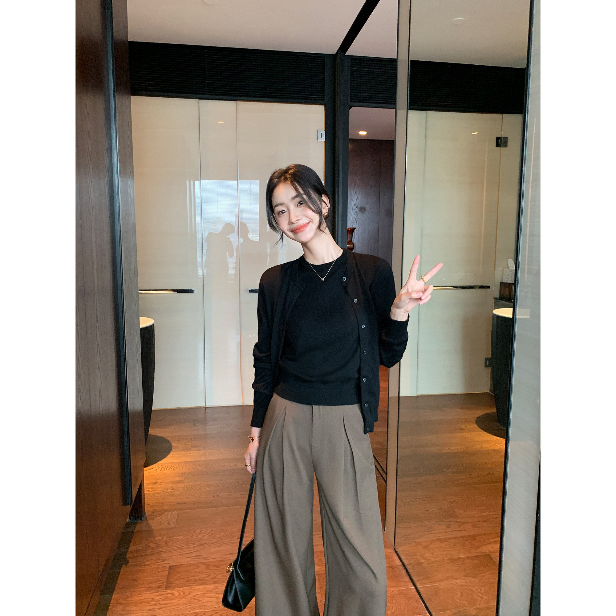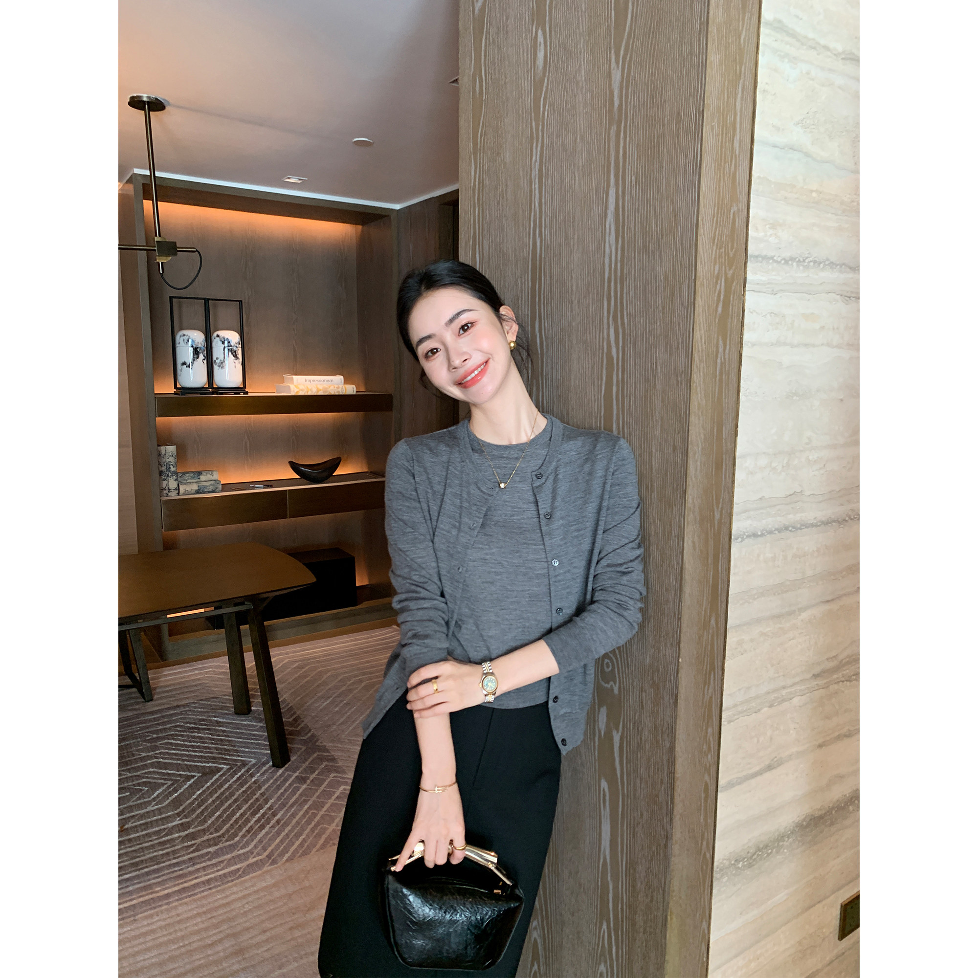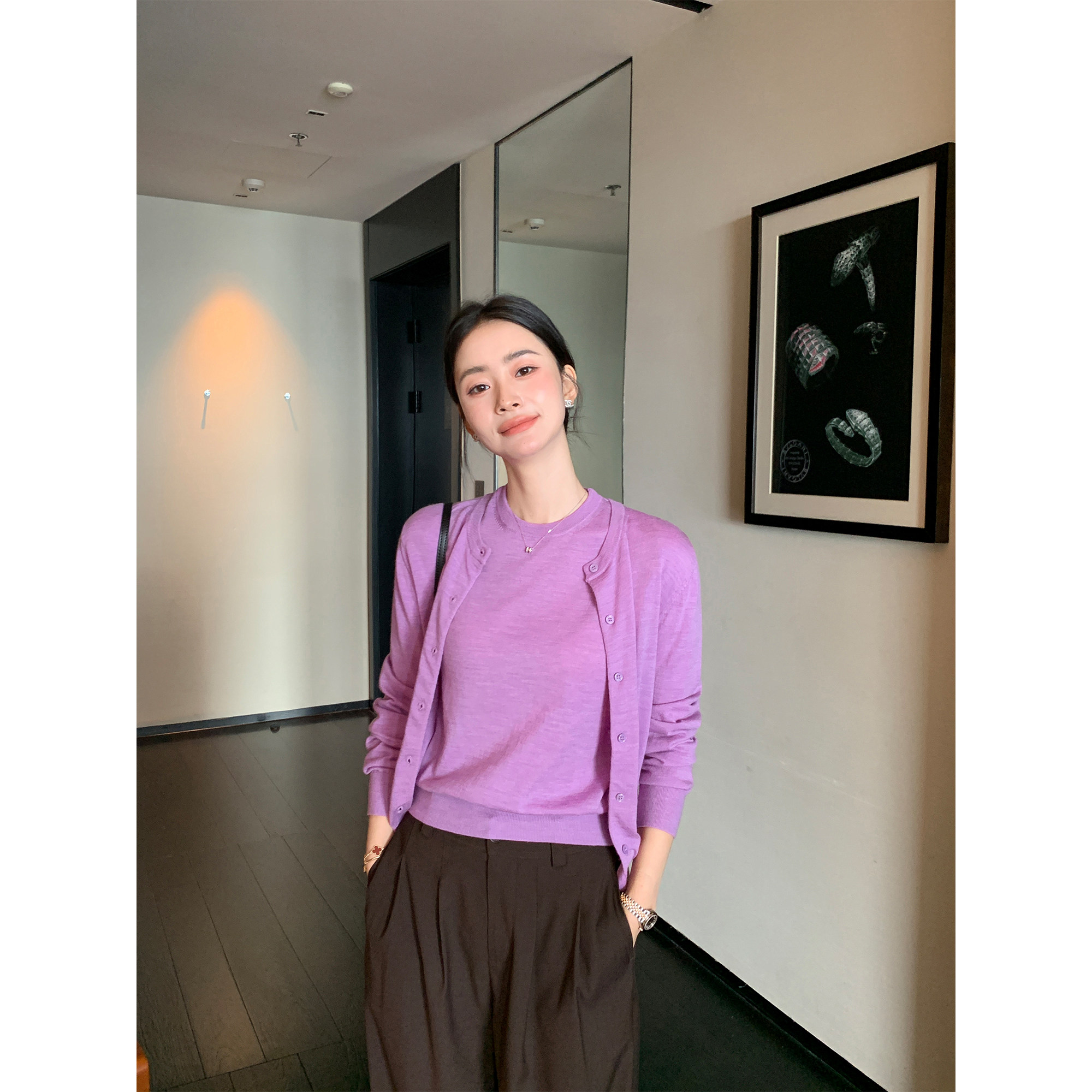 短袖 Maven 女圆领修身 优雅知性1OO羊毛针织开衫 上衣两件套 Lin