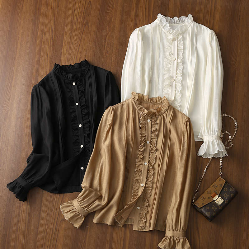 气质拼木耳花边竖压褶长袖 法式 衬衫 女秋季 淘么淘 新款 复古宫廷风