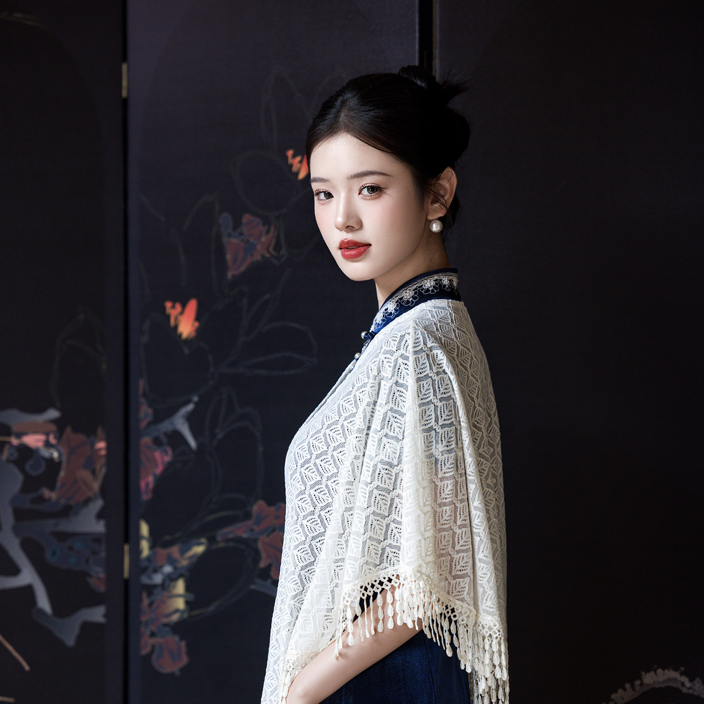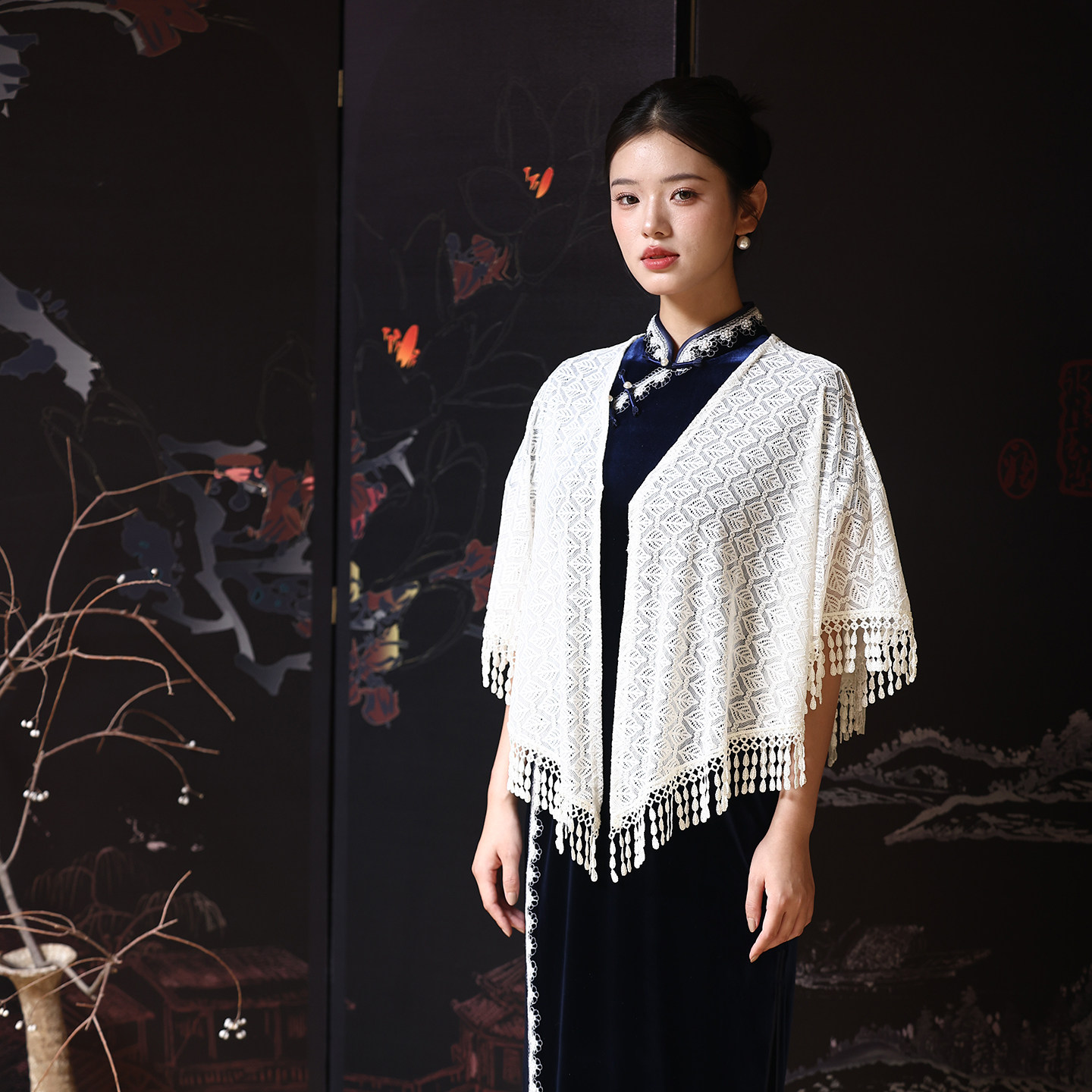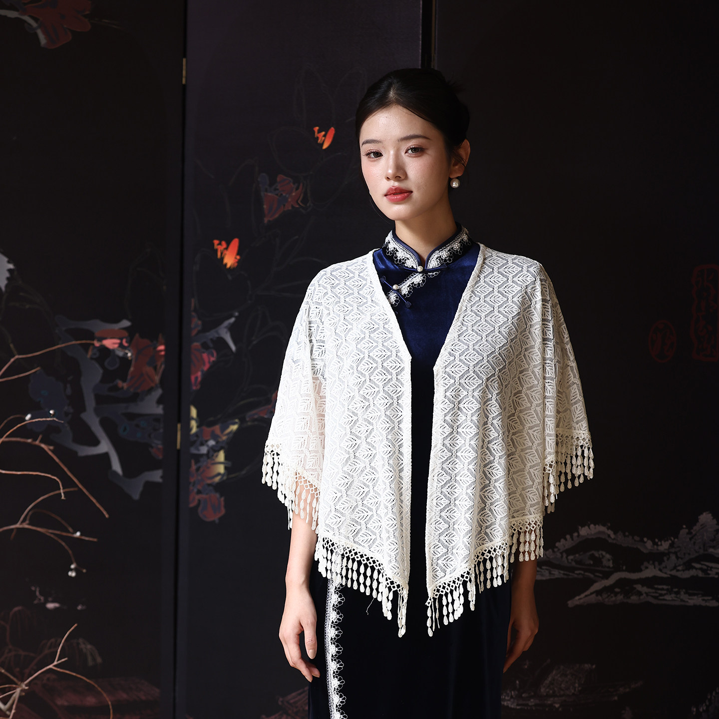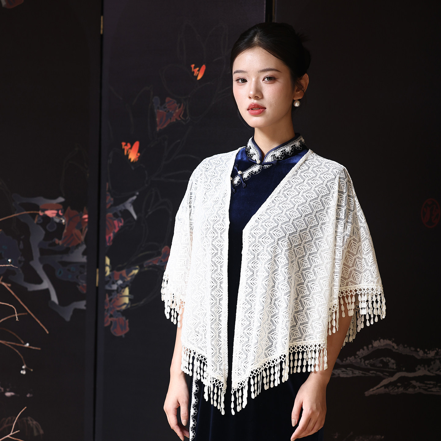 2025年新款 中国风流苏镂空女 蕾丝披肩旗袍外搭配裙子复古外套薄款