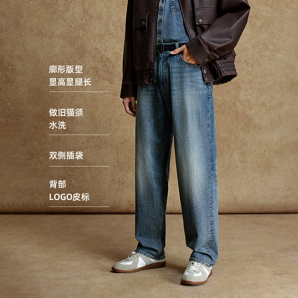 舒适全棉水洗做旧休闲廓形裤 25新款 子 冬冬牛仔裤 杰克琼斯男装