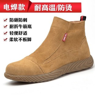高帮拉链鞋 男劳保专用防砸防刺穿电焊工轻便防臭工作钢板老保男鞋