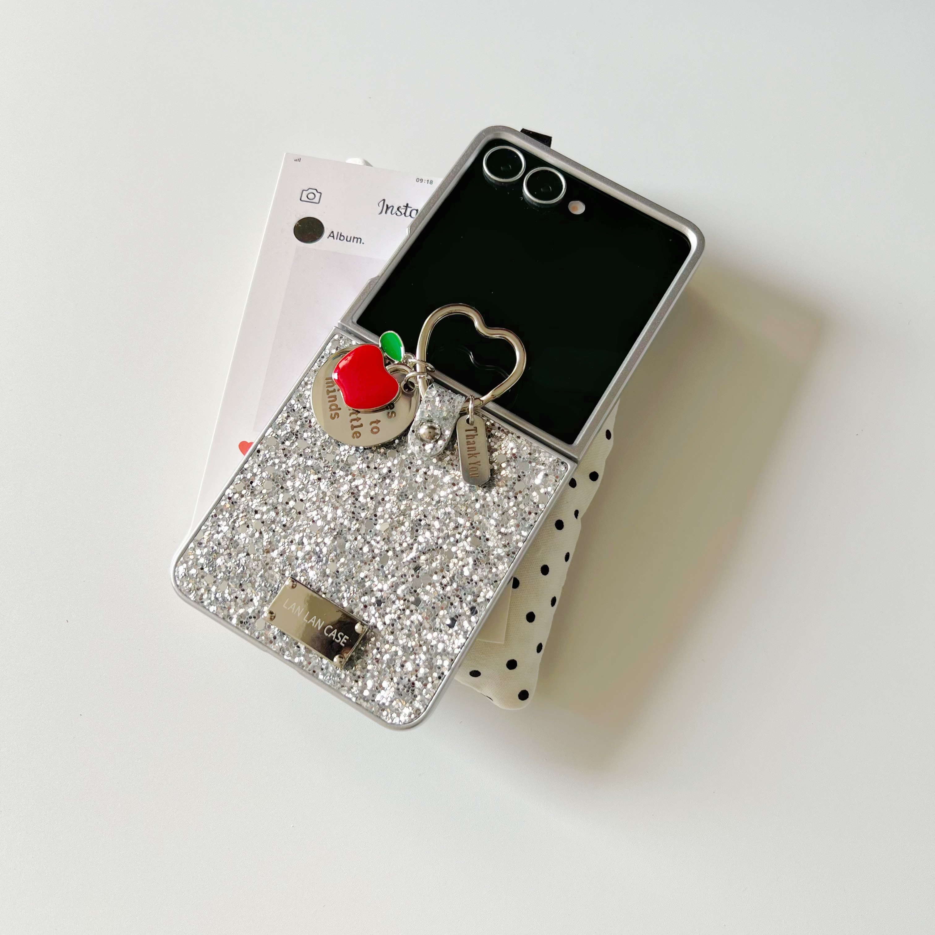 ins小精致闪钻适用于华为purax手机壳小折叠适用于小米mixflip2爱心挂环保护套适用于三星zflip7