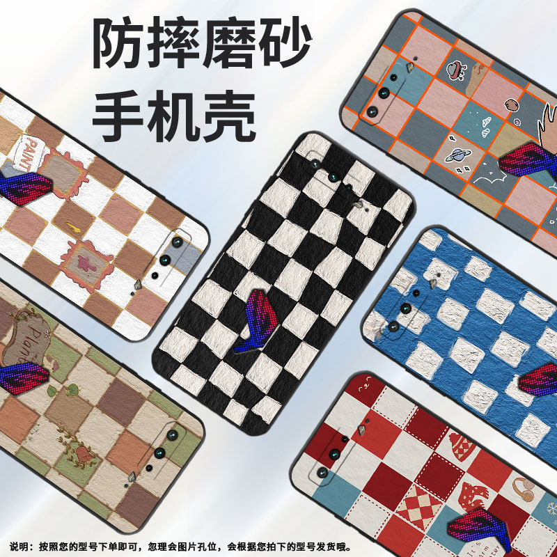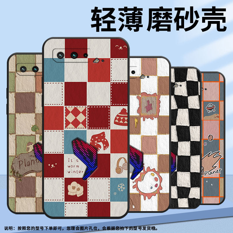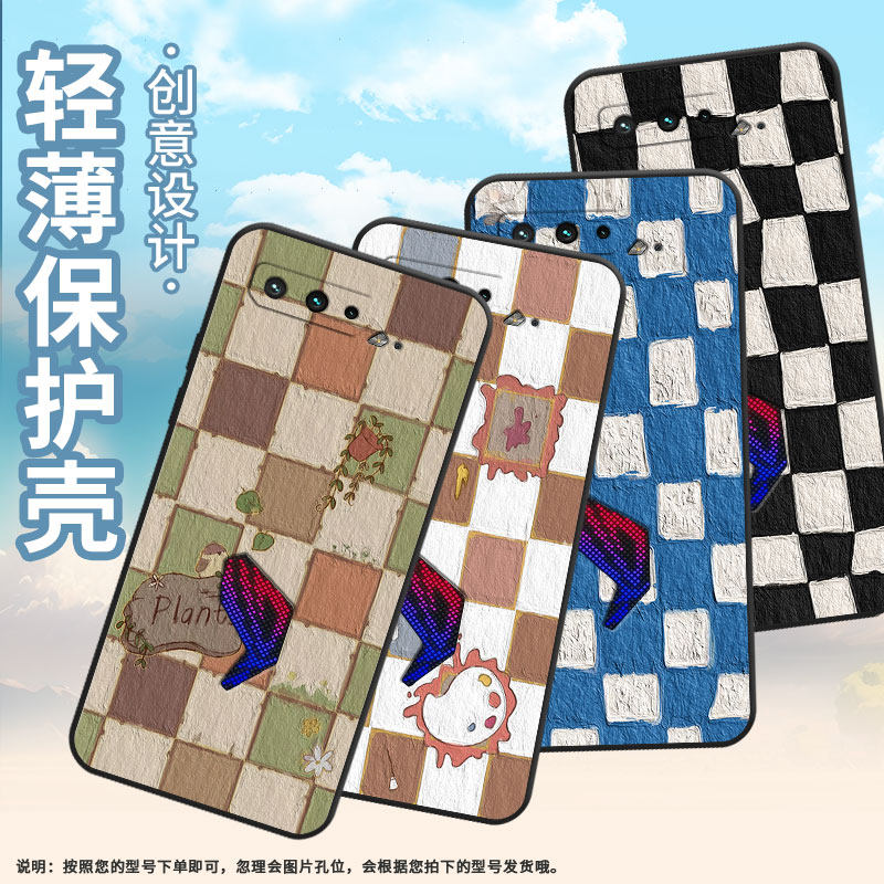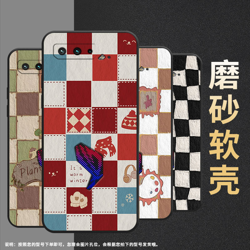 适用rogphone5手机壳rog游戏手机3高级感rog游戏手机5s简约轻薄耐脏棋盘格黑个性 硅胶油画格子防摔暖冬方块