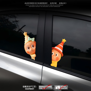 适用于可爱卡通玩偶周边汽车车窗玻璃装 饰贴电动摩托车划痕遮挡贴