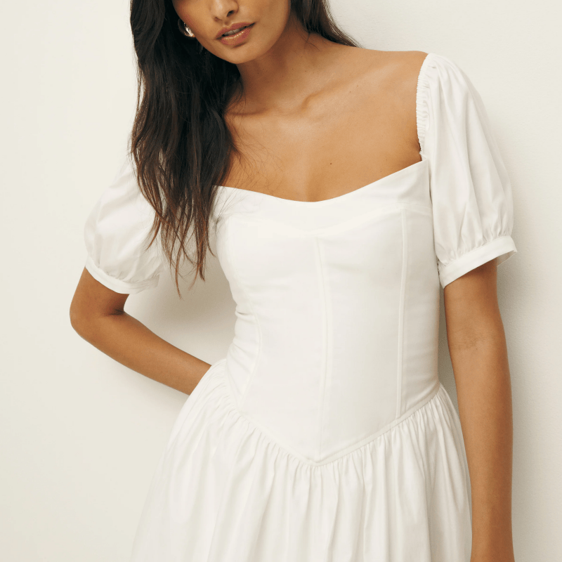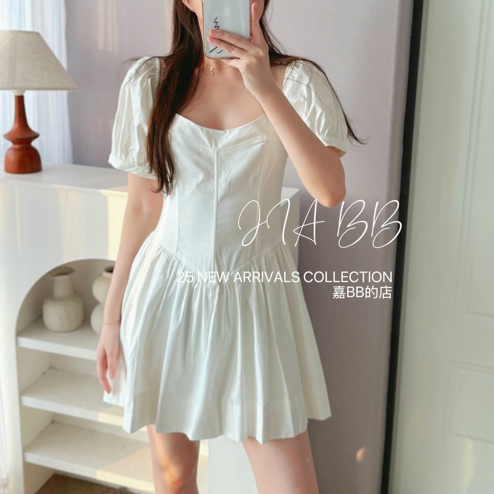 宫廷风蕾丝拼接鱼骨连衣裙白色通勤日常夏 法式 LaceMade 破茧成蝶